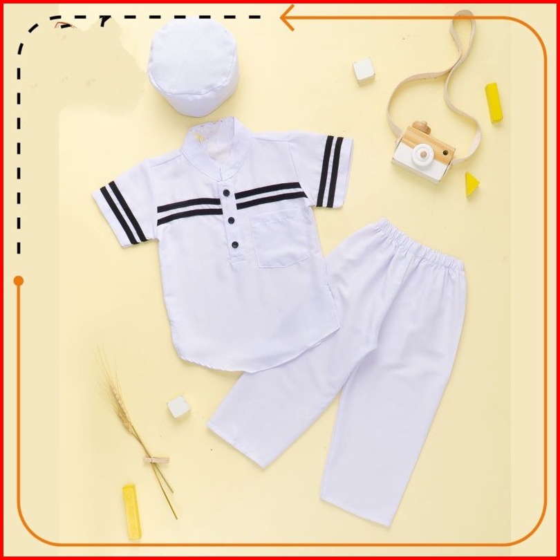 Setelan Koko Set Putih Manasik Haji Usia 0-9 Tahun