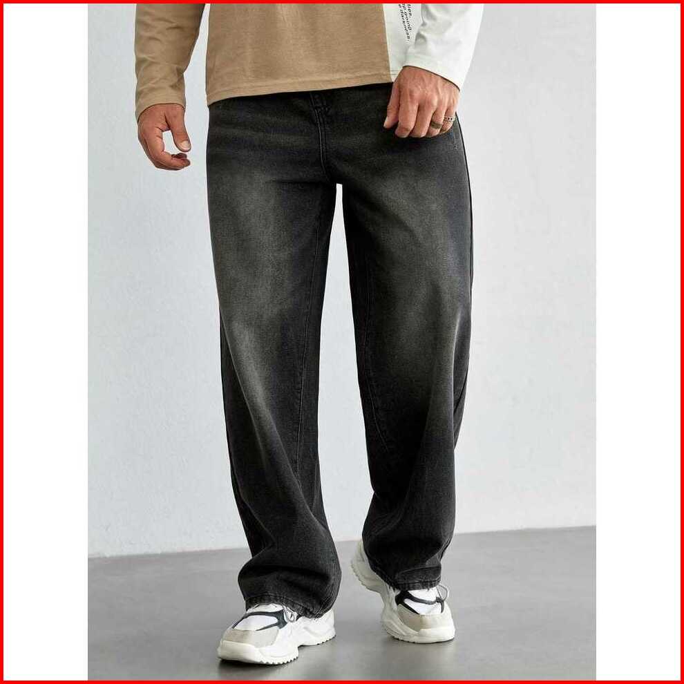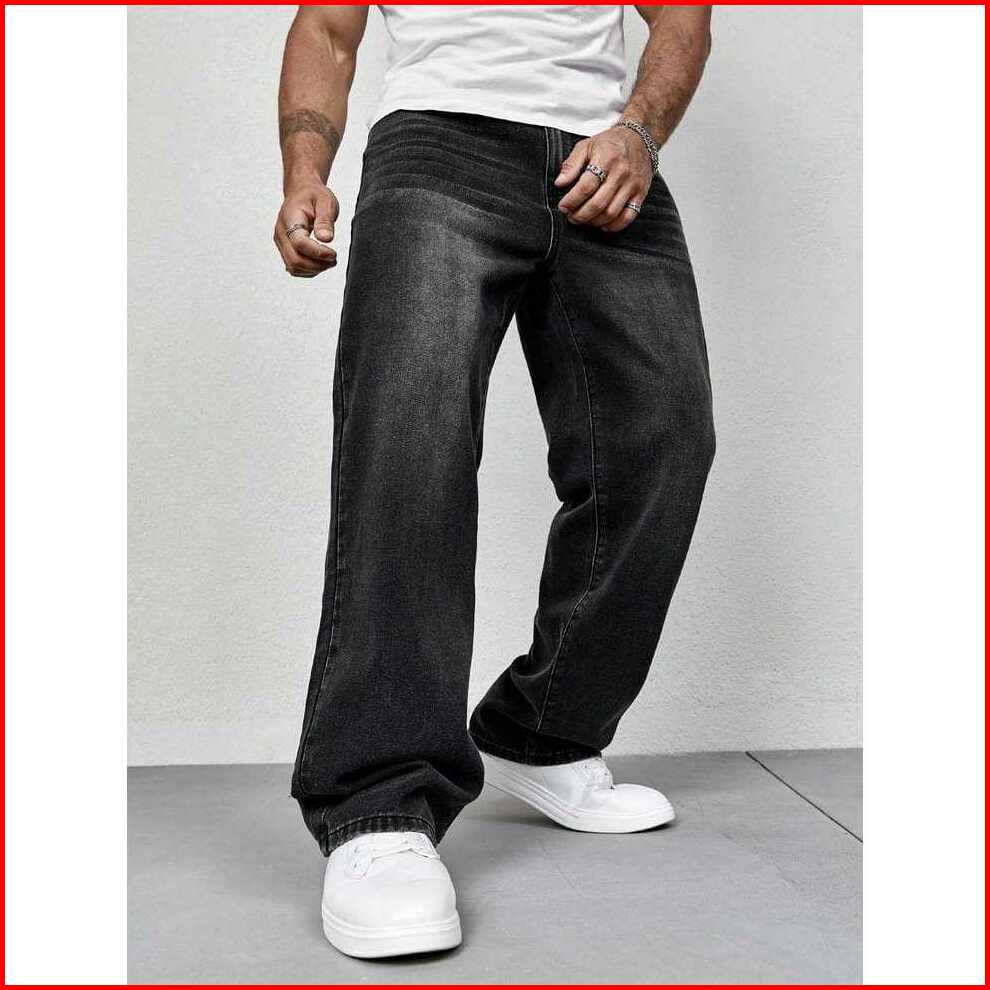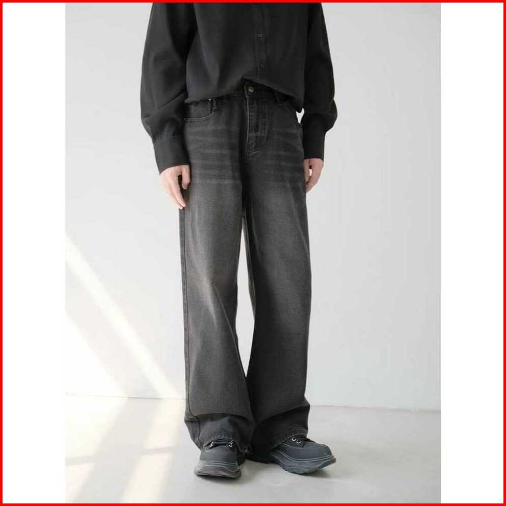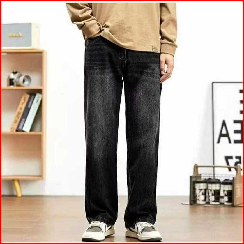 Celana Jeans Panjang Pria Whisker Hitam Lebar Gombrong Skena Black Fit Jumbo Bahan Denim Loose Koreanstyle Baggy Jeans G