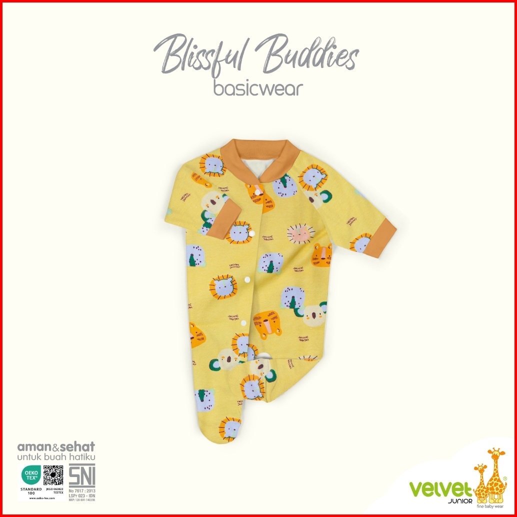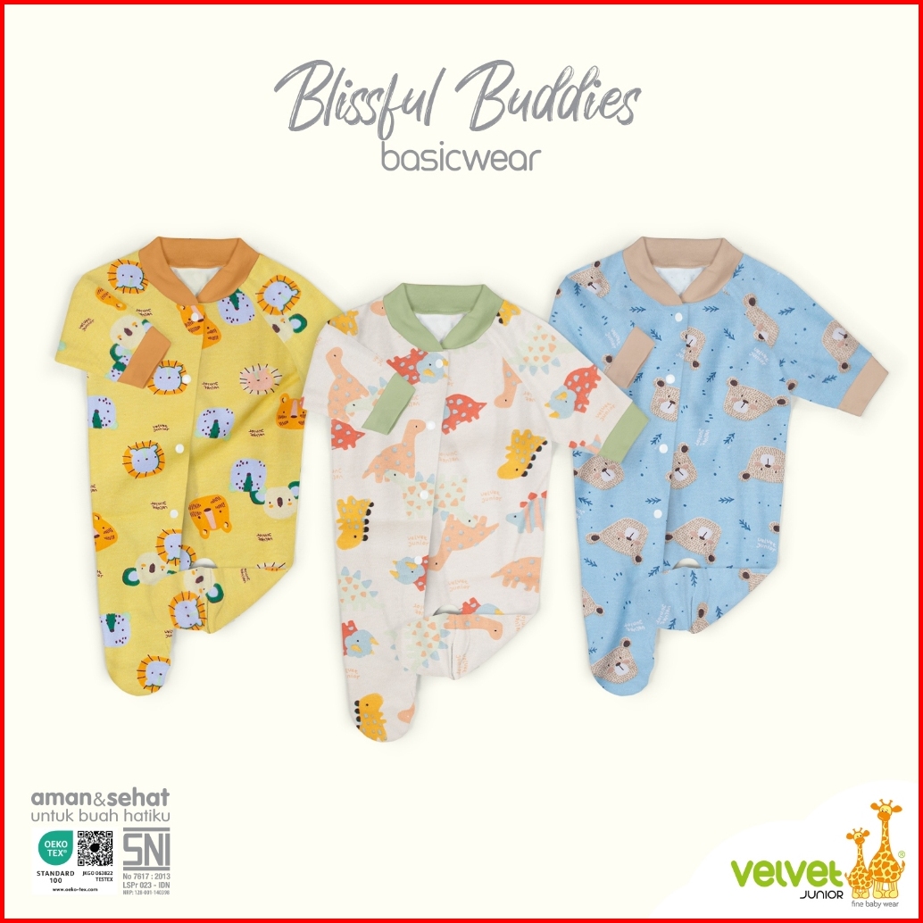 Velvet Junior Jumper Bayi Sleepsuit Oblong Tutup Kaki - Basicwear Blissful Buddies Happy Days