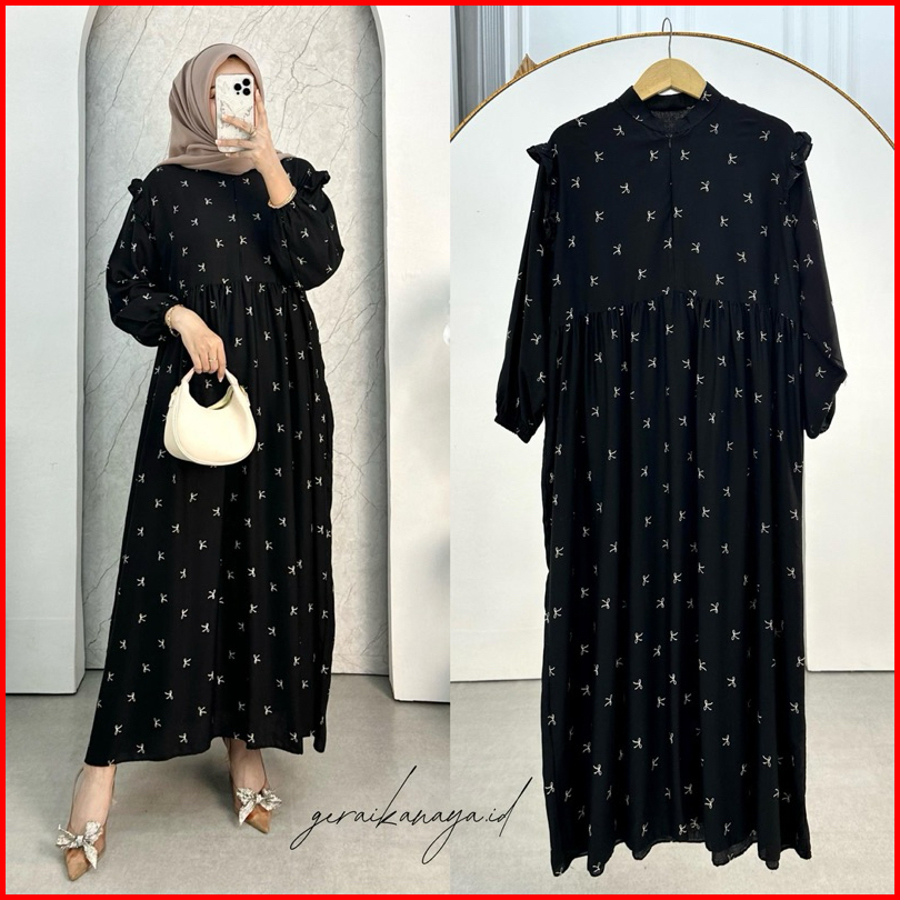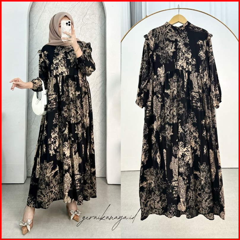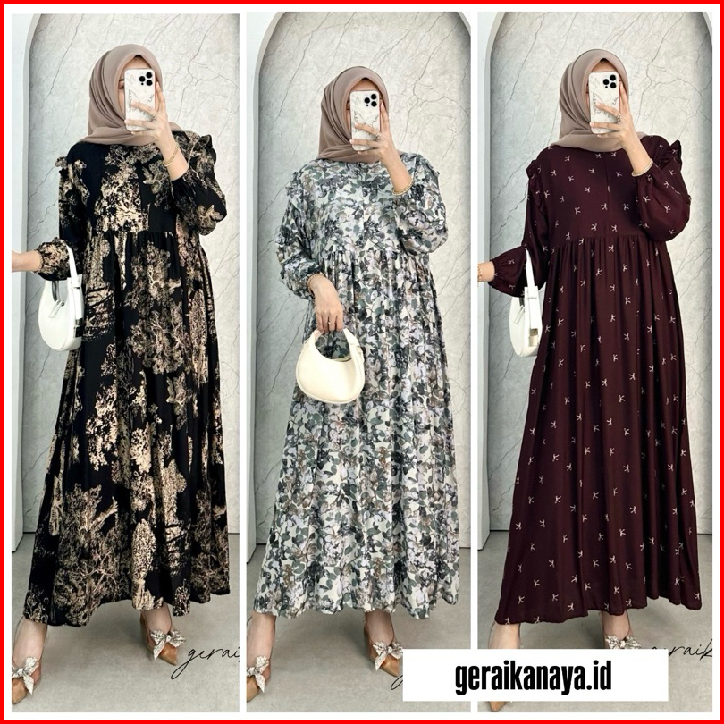 Laura Dress By Geraikanaya.id Busui Friendly Gamis Wanita Motif Kain Rayon Diamond Elegan