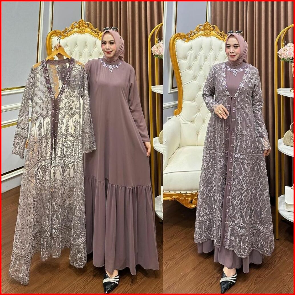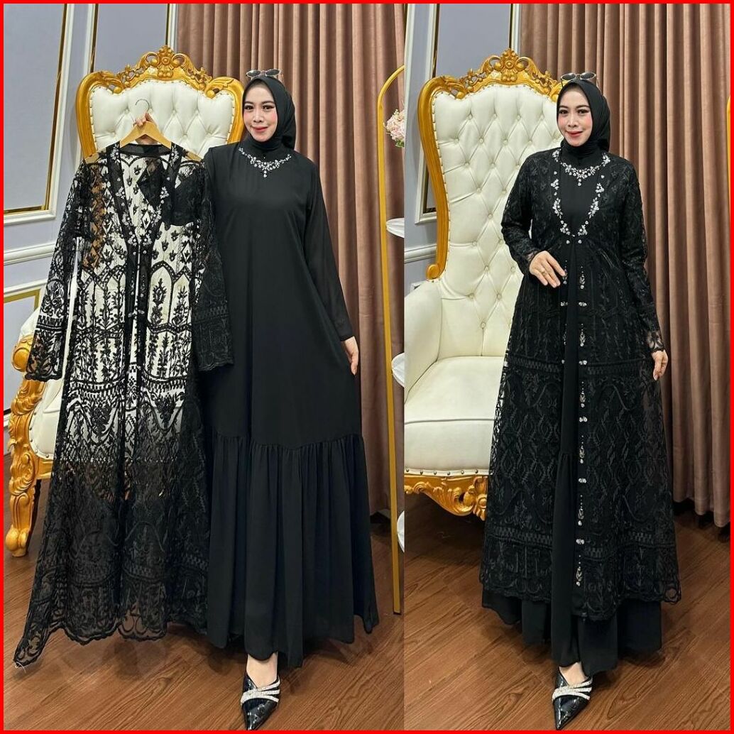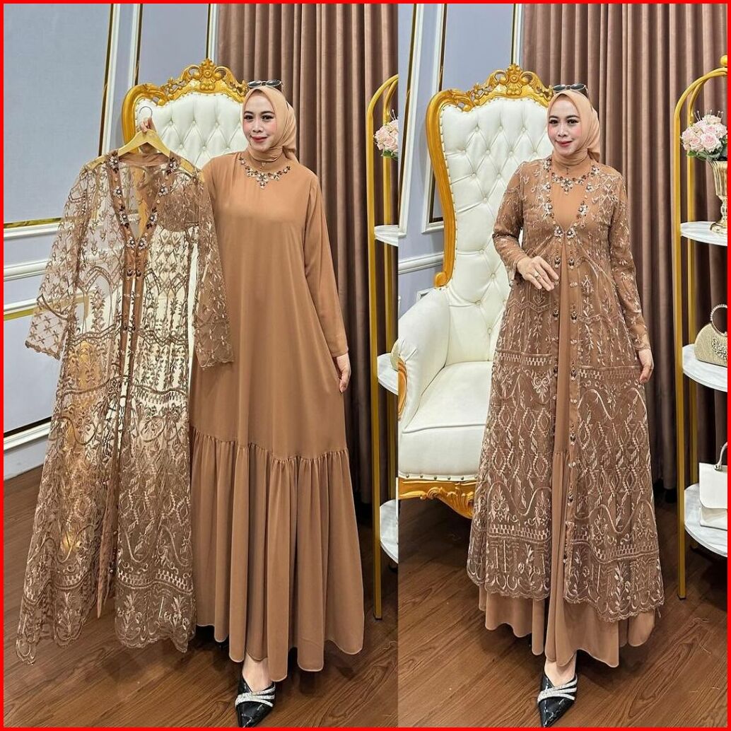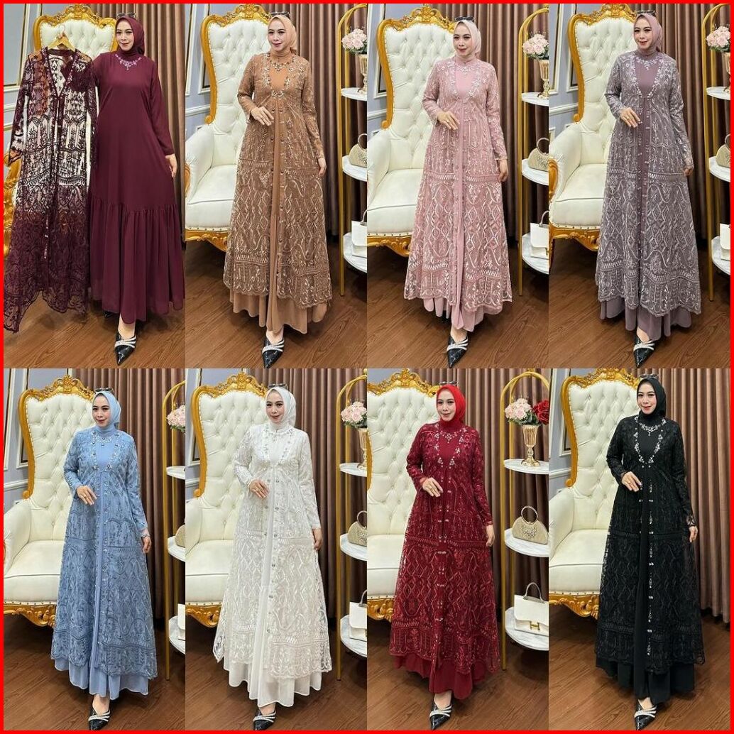 Baju Gamis Brokat Terbaru 2025 Mewah Kekinian Arimbi Dress Maxy Bahan Ceruty Babydoll Mix Brokat Aplikasi Payet Premium
