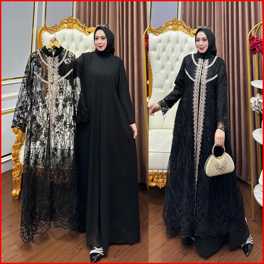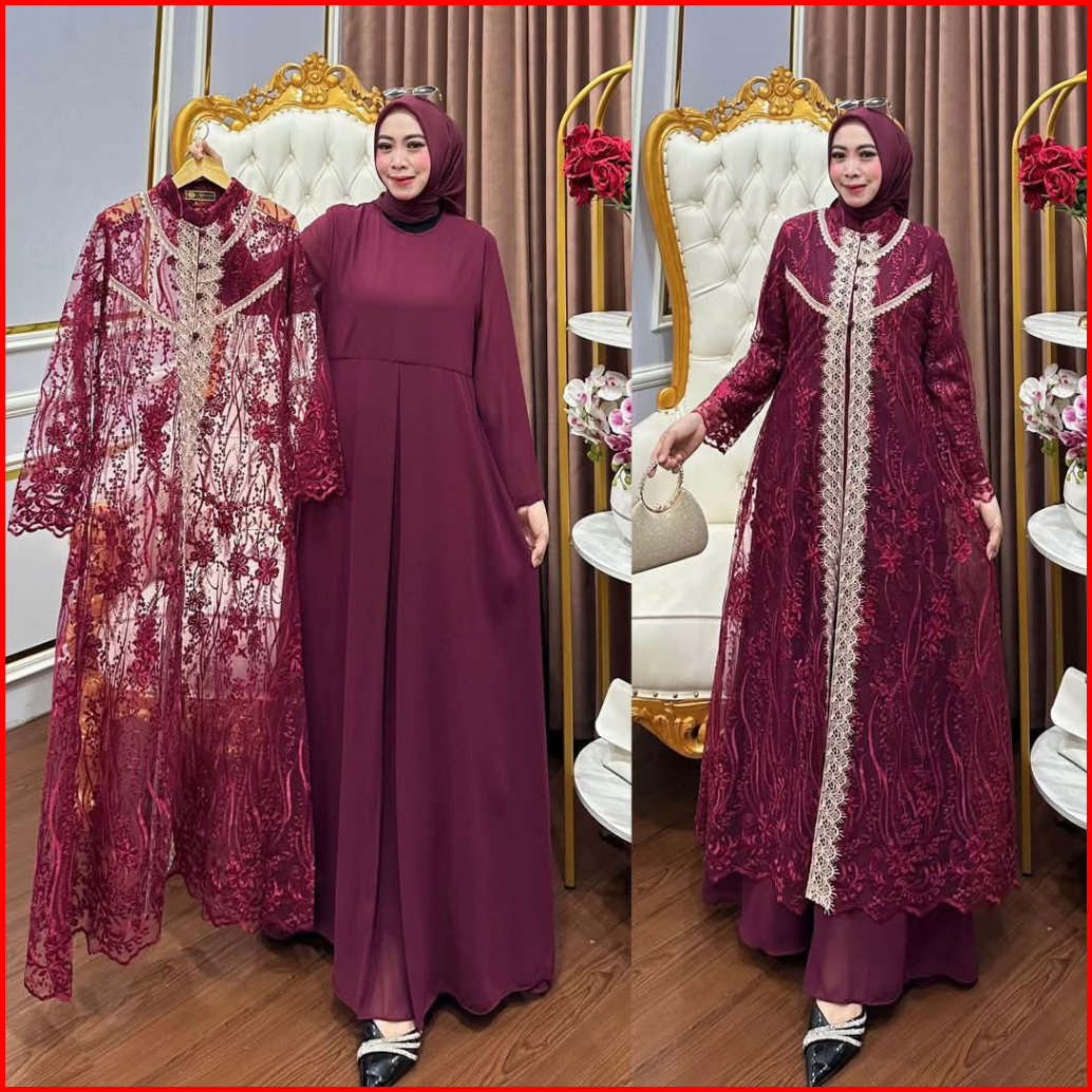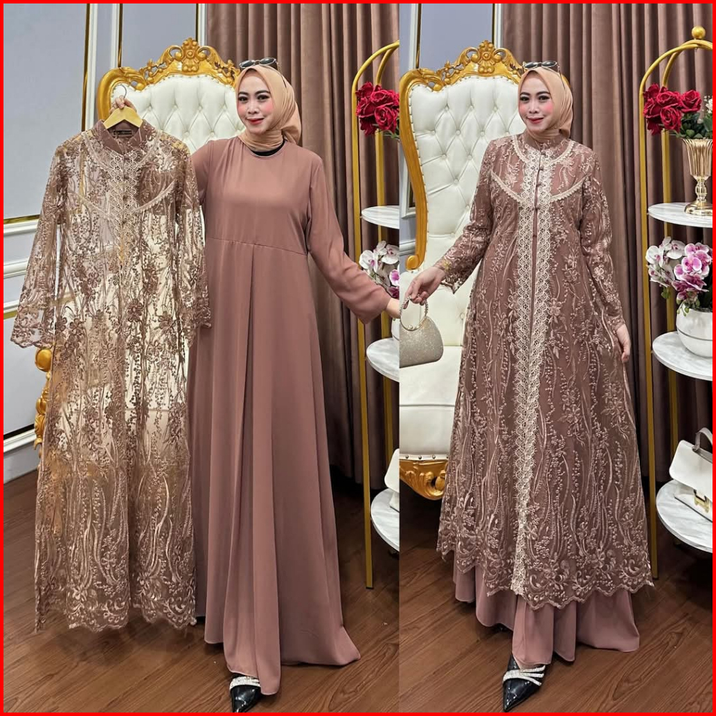 Gamis Kondangan Wanita Dewasa Amira Dress Brukat Mix Renda Gaun Pesta Jumbo Terbaru 2025 Maxy Dress