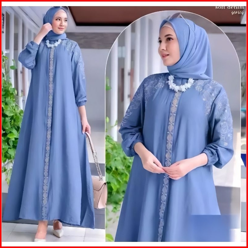Inayah Dress Gamis Lebaran 2025 Model Gamis Terbaru Wanita Kekinian Polo Linen Bordir Mewah
