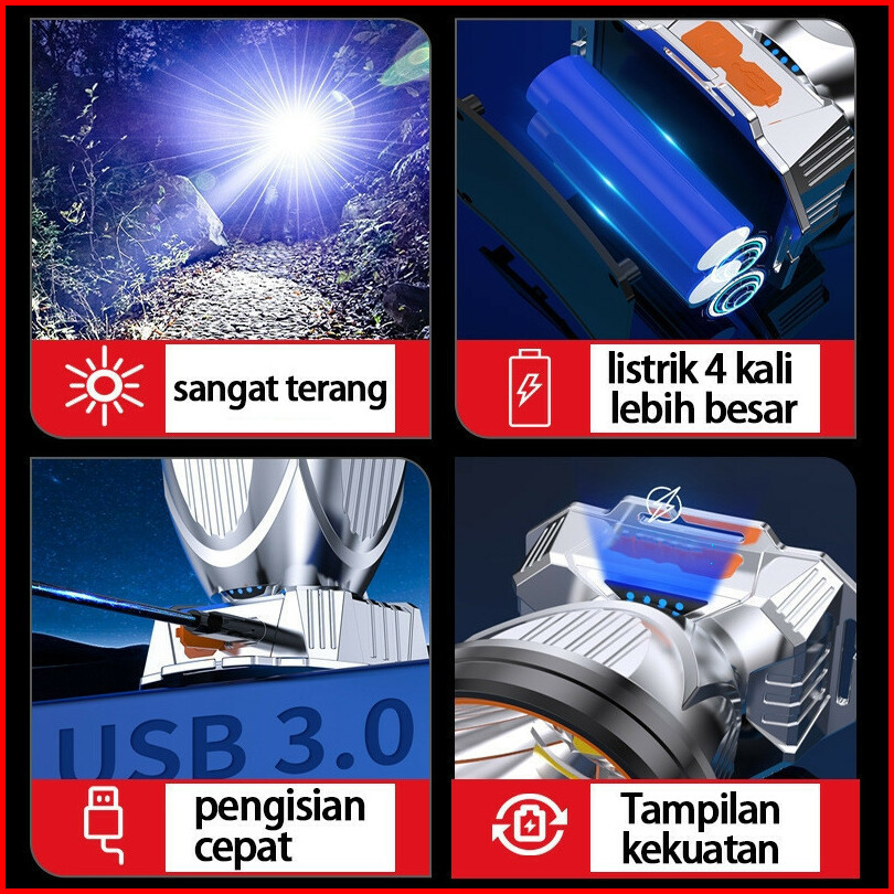 500w Senter Kepala Headlamp Super Terang Outdoor Camping Berburu Hiking Lampu Senter Kepala Usb Rechargeable Waterproof