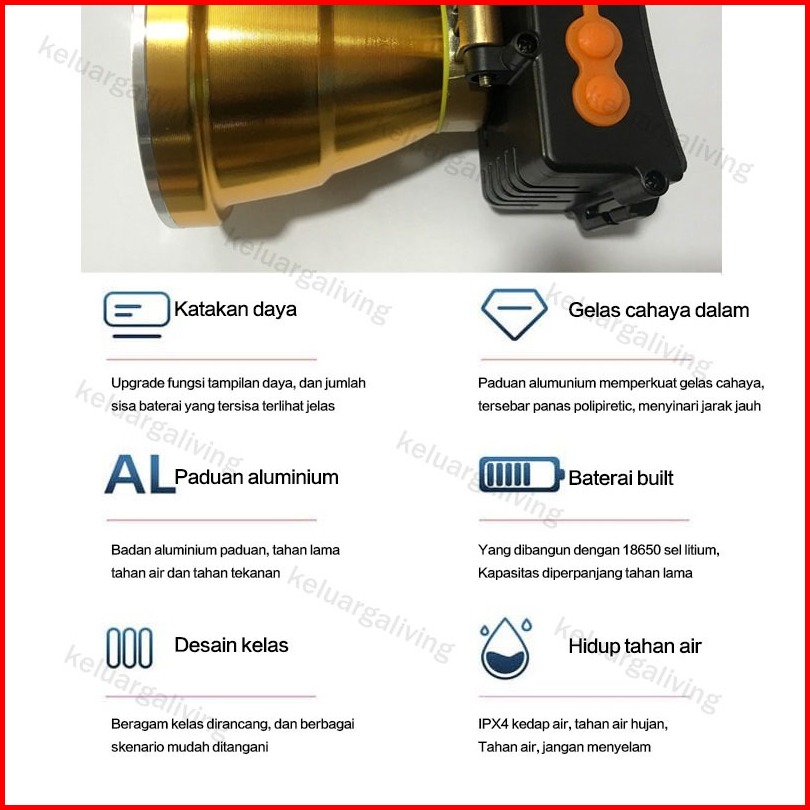 Iradiasi 30000m Penerangan Terus Menerus Selama 800 Jam Led Senter Super Terang Lampu Depan Luar Yang Kuat Lampu Depan T