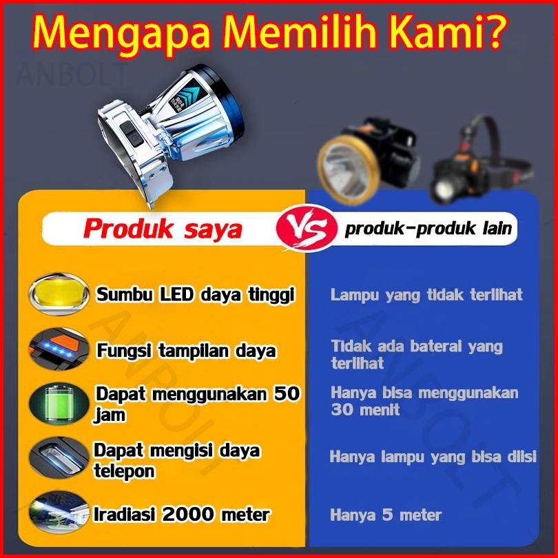 Anbolt Senter Kepala Super Terang 500w Senter Kepala Dapat Digunakan Waterproof Led Headlamp Super Terang Outdoor Zoom C