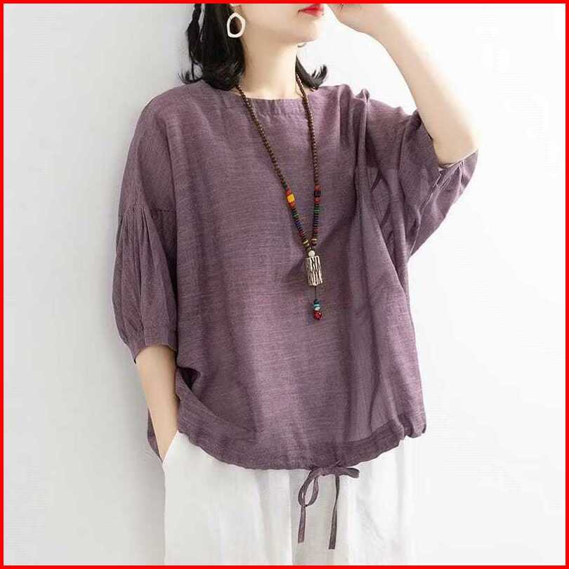 Blouse Wanita Kekinian Happy Serut Bawah - Blouse Polo Linen Ld 125