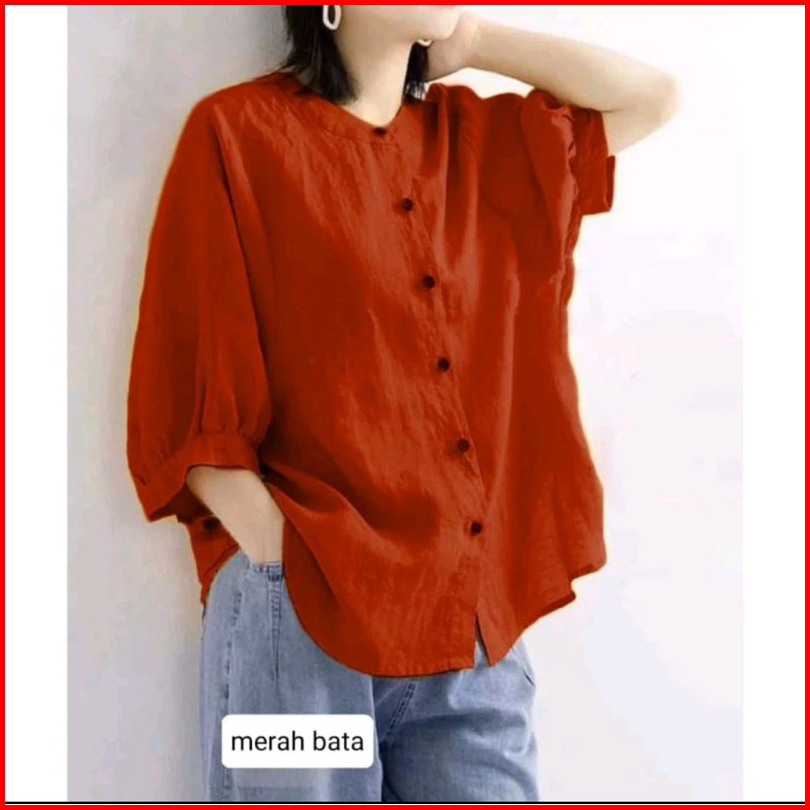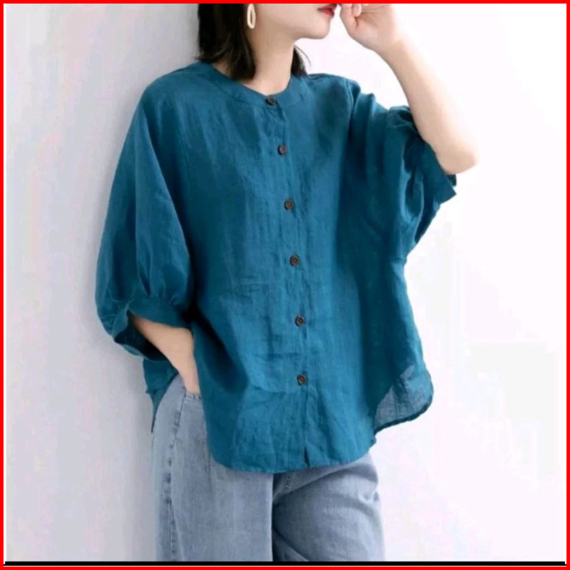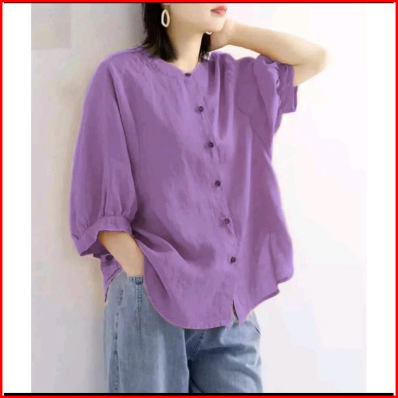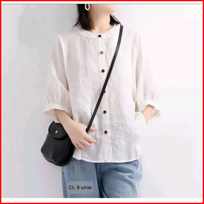 Kemeja Polos Linen Premium Kerah Shanghai Jumbo Korean Style Blouse