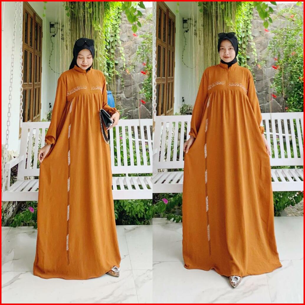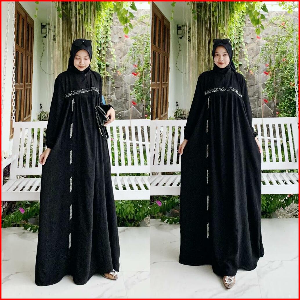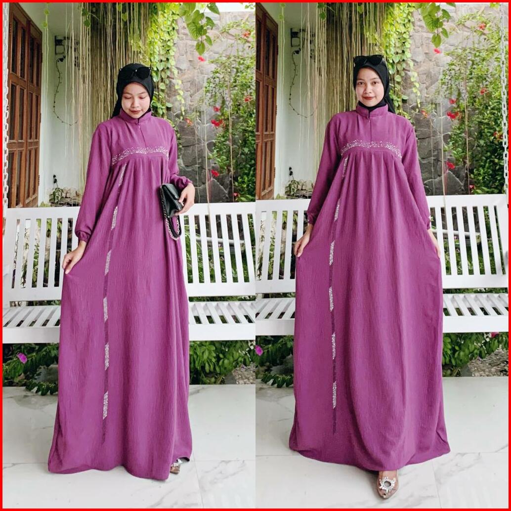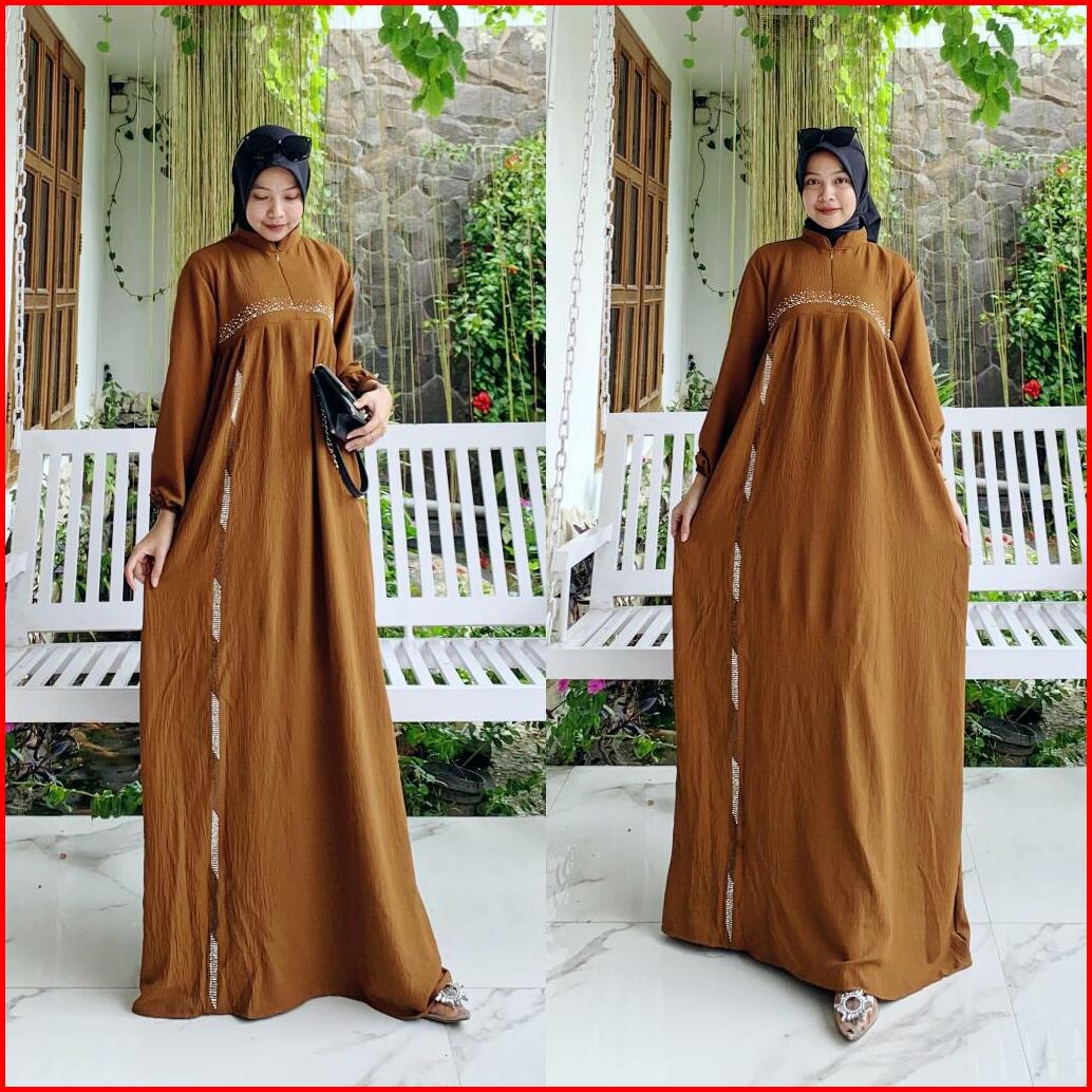 Gamis Anggun Crincle Airflow Mix Swaroski Dress Muslim Simle Terbaru Free Bross