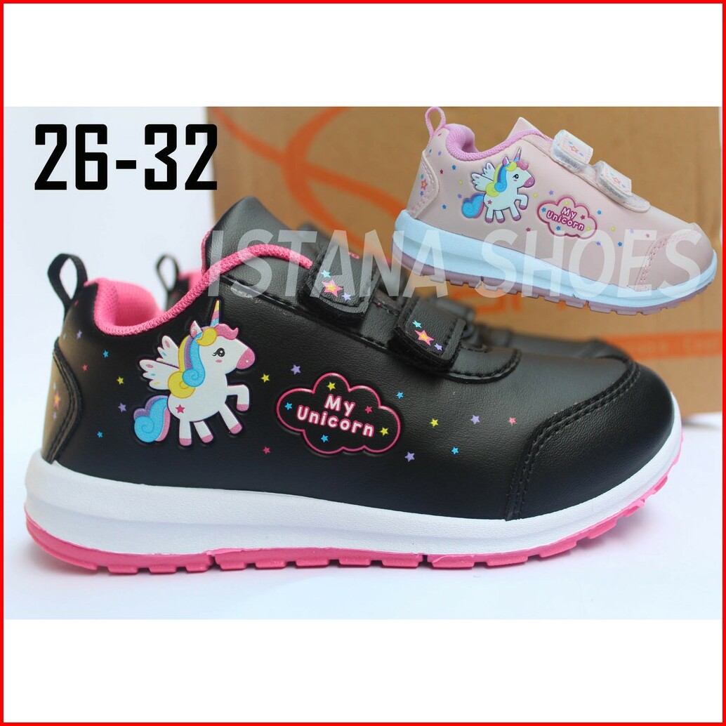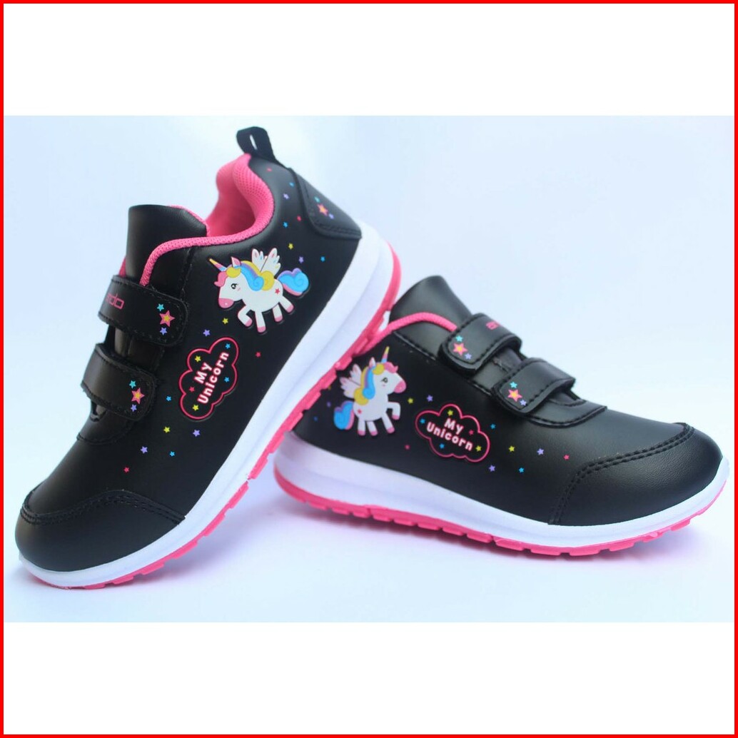 Sepatu Sekolah Anak Perempuan Ando Kuda Pony Pink Paud Tk Sd Kets Sport Running Minicorn Hitam
