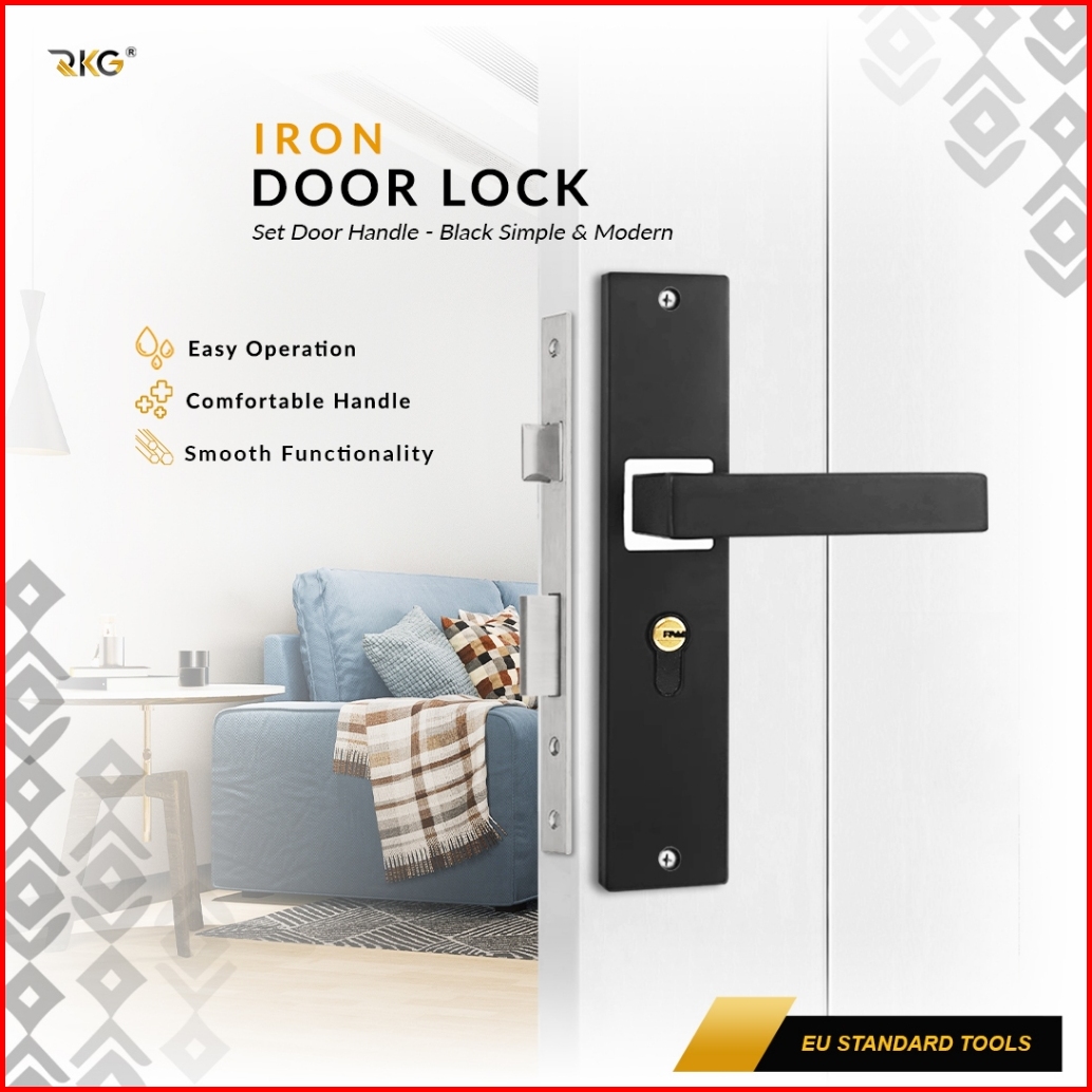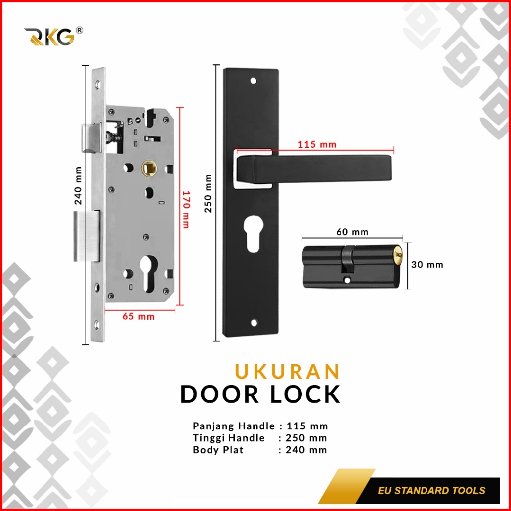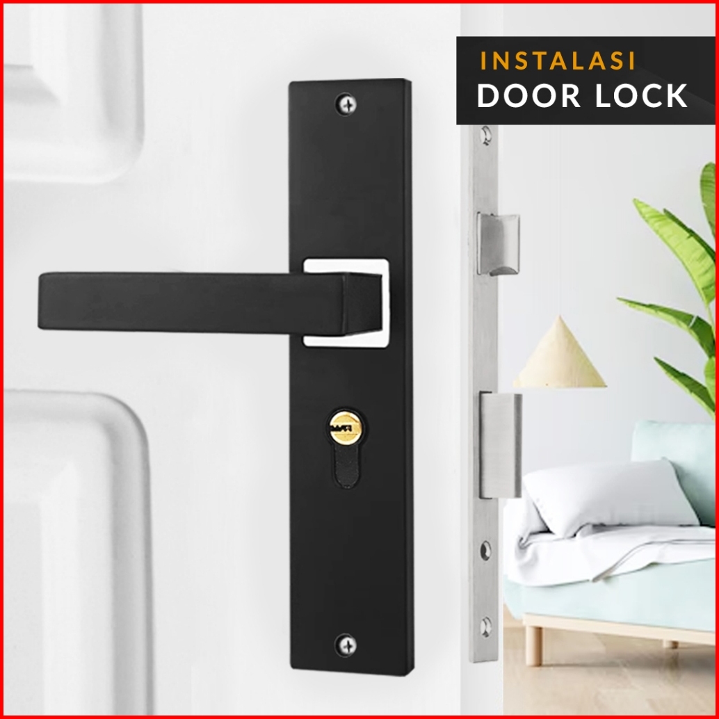 Kunci Pintu Gagang Kotak Lengkung Besar Cylinder Door Lock Set Black