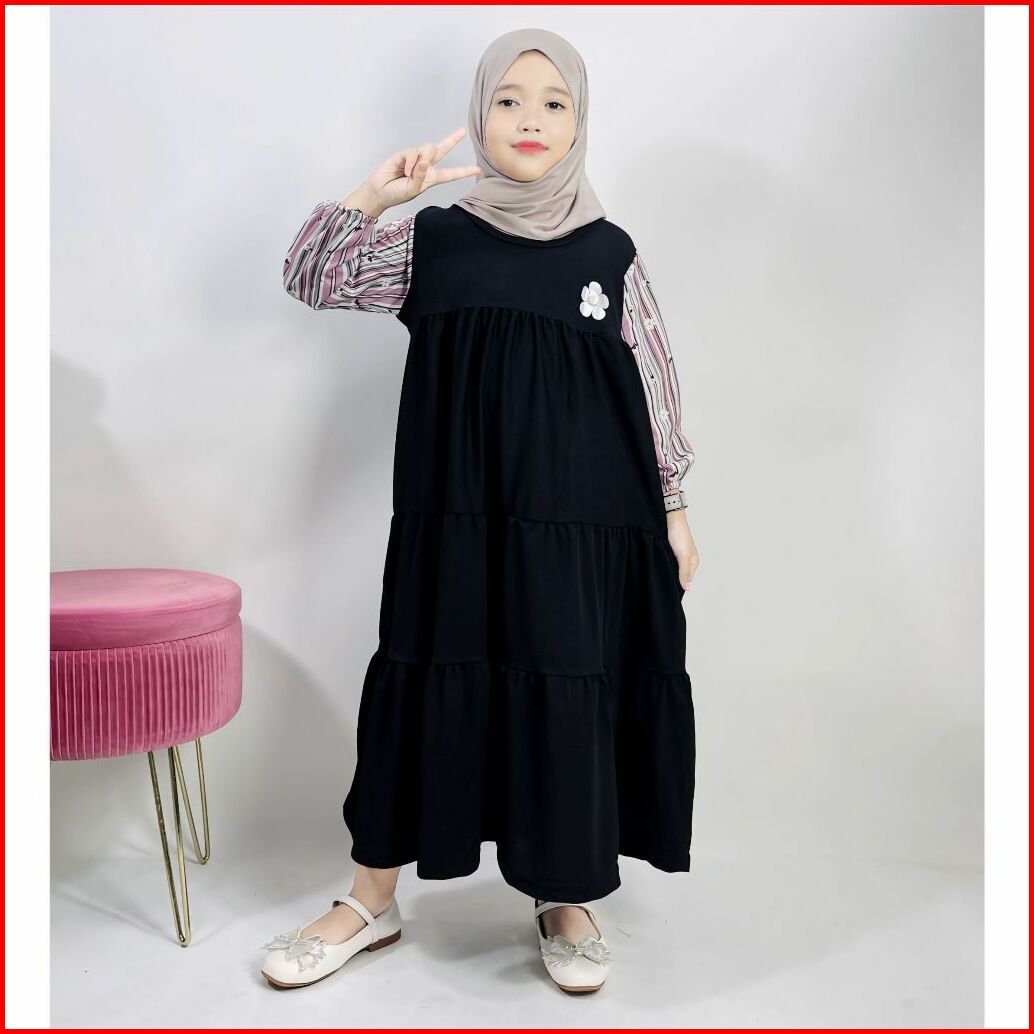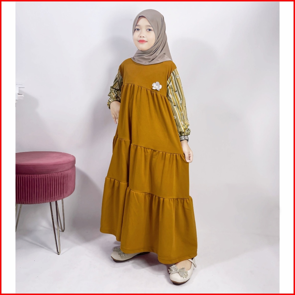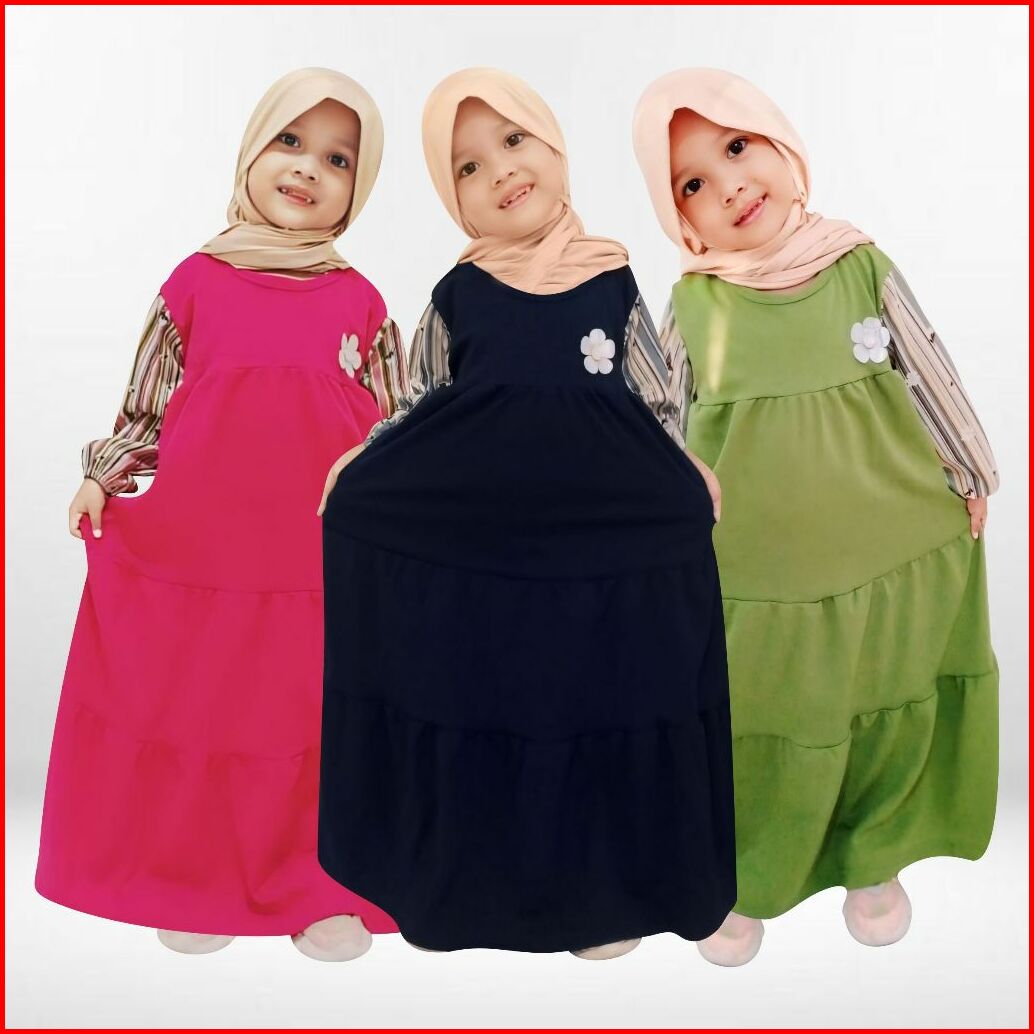 Gamis Anak Tangan Salur Bunga 138 Anesafashion Usia 3-11 Tahun