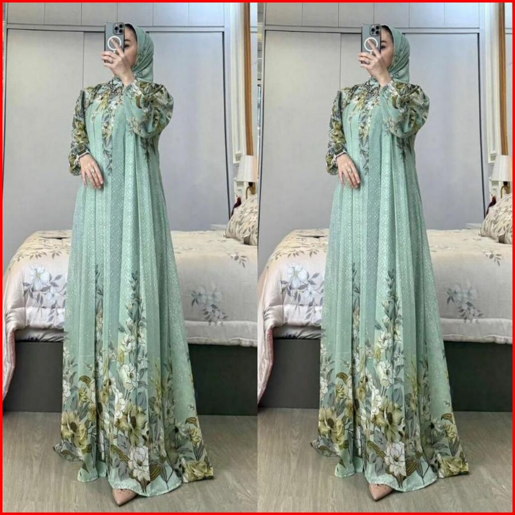 Gamis Wanita Setelan Hijab Segiempat - Bahan Rayon Diamond - Gamis Lebaran 2025 Model Gamis Terbaru