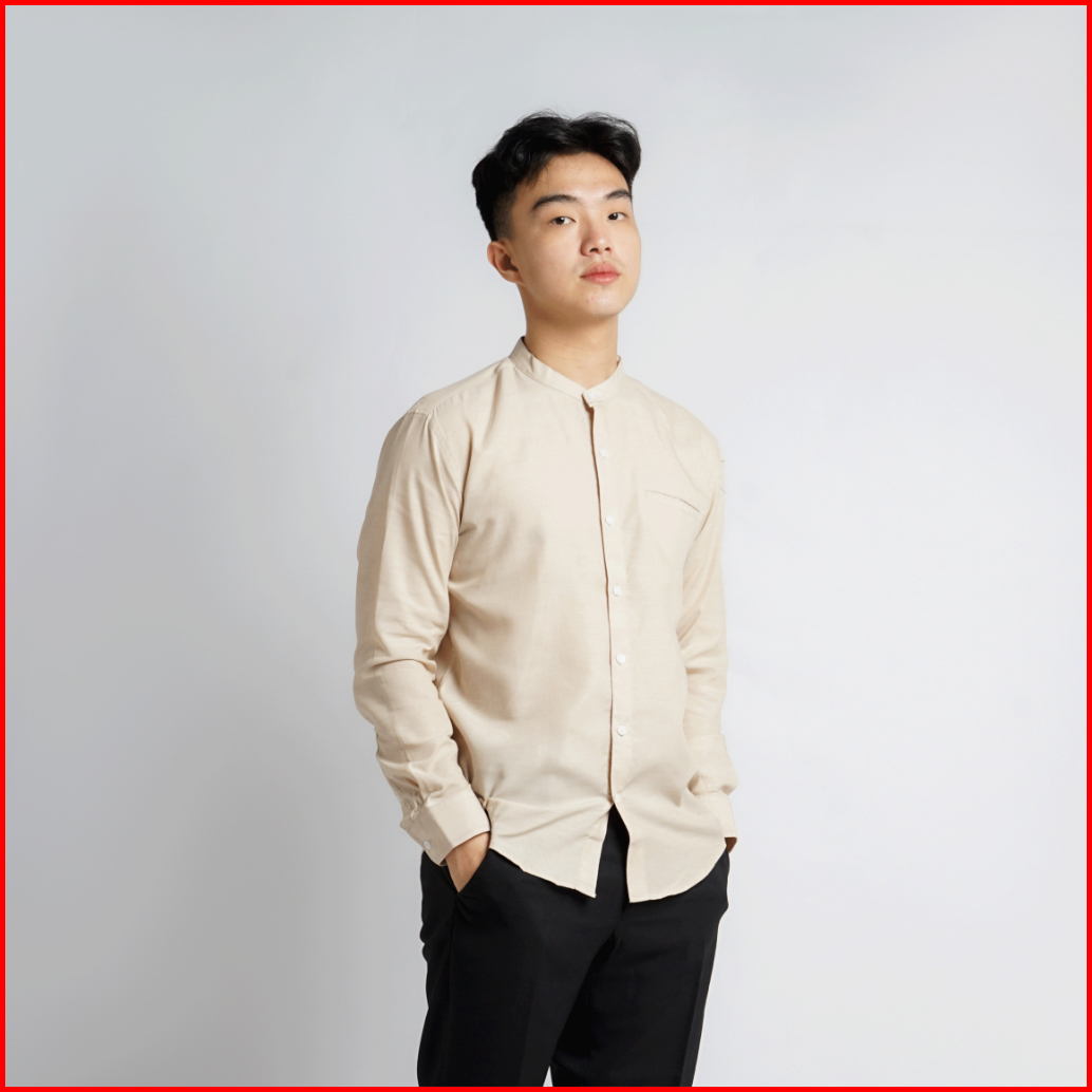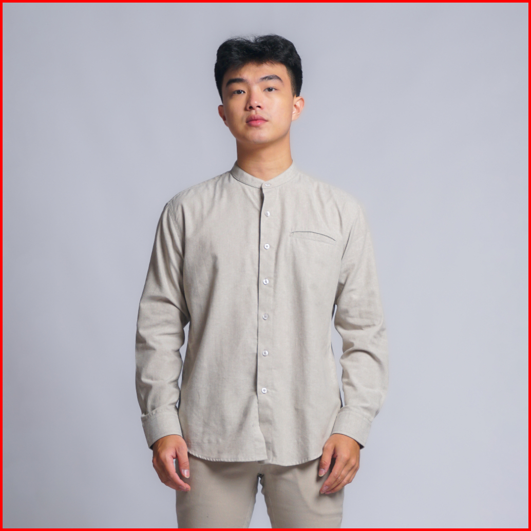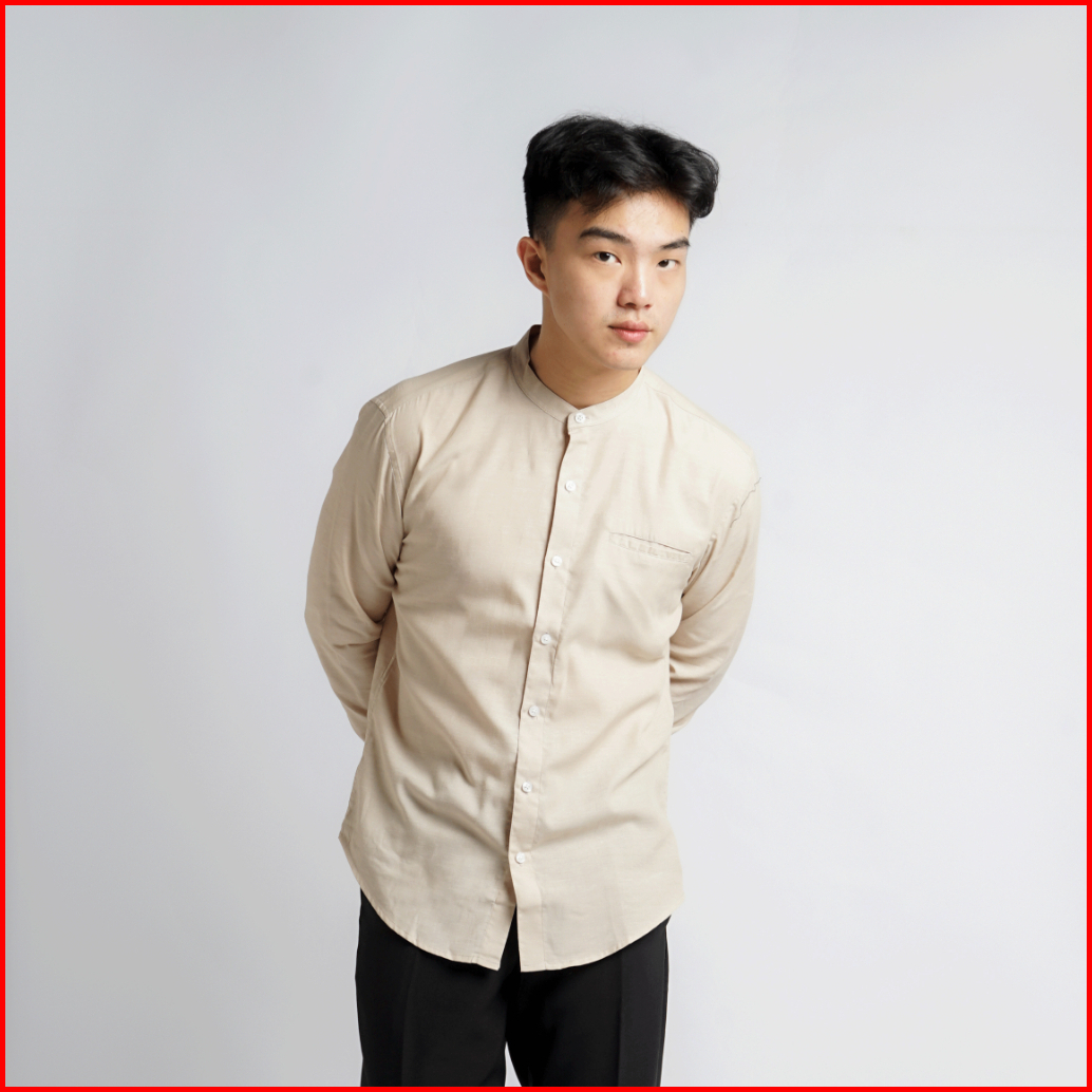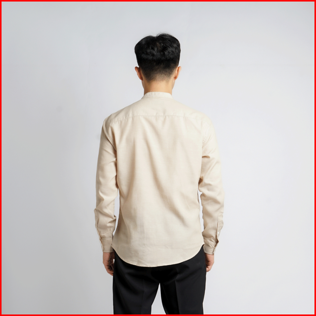 Kemeja Pria Kerah Mandarin Oxford Kumma Asta Lengan Panjang Cream