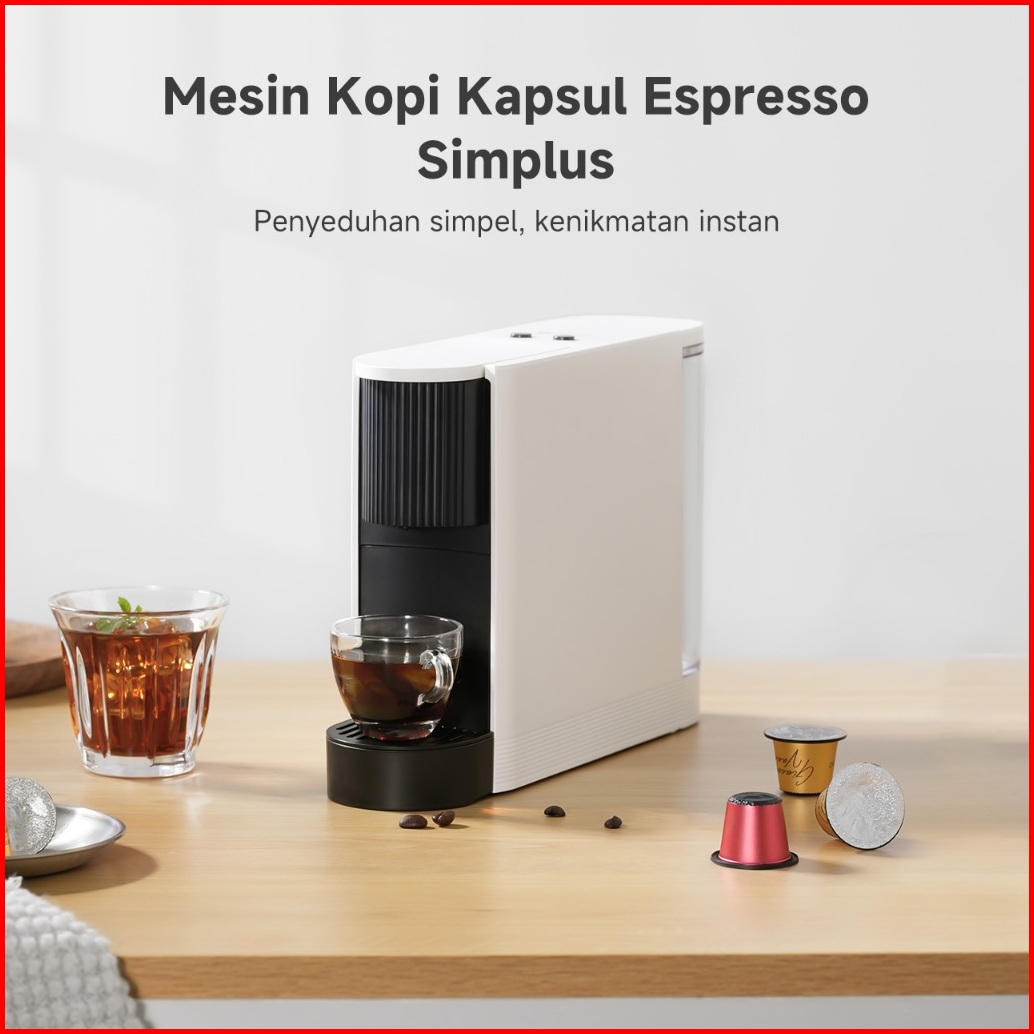 Simplus Mesin Kopi Kapsul Coffe Maker Ekstraksi 20 Bar Espresso Pilihan 2 Cup Desain Kompak Untuk Rumah Dan Kantor