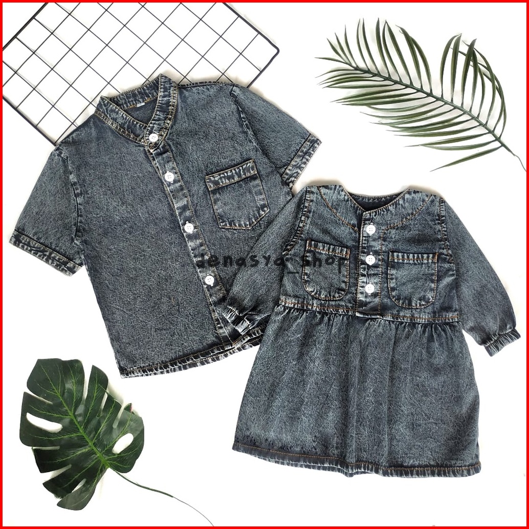 Harga Satuan Kemeja Dress Jeans Couple Kemeja Jeans Snow Black Anak Dress Snow Anak
