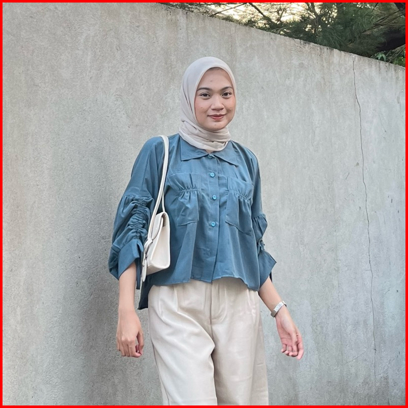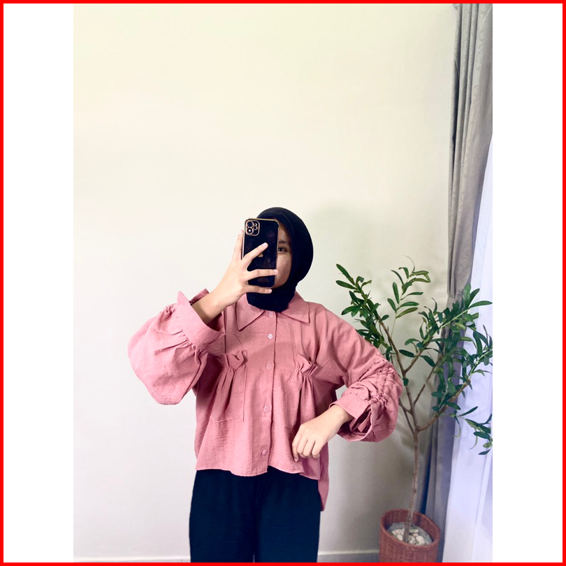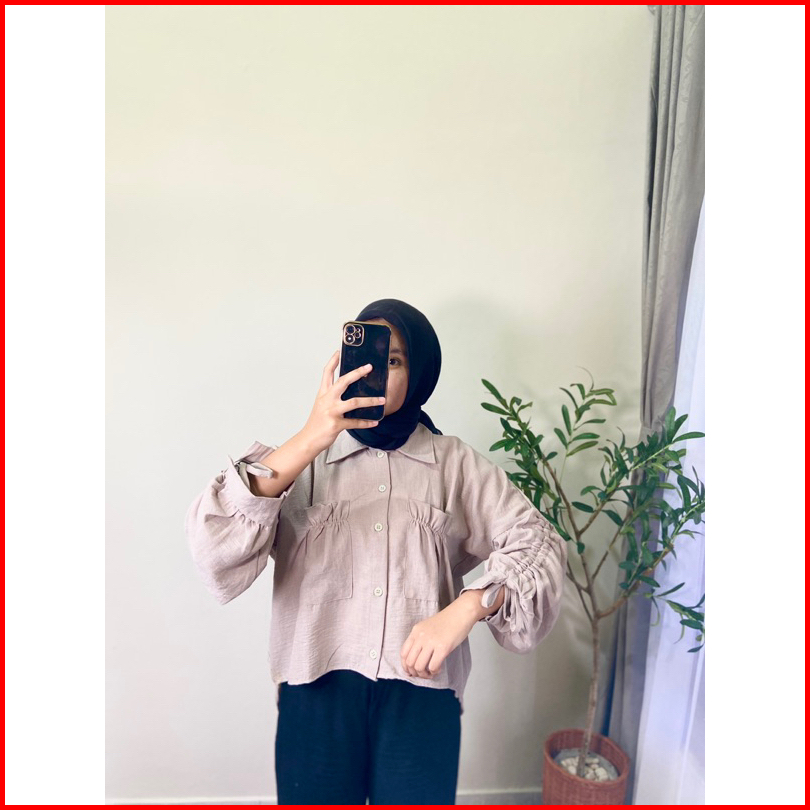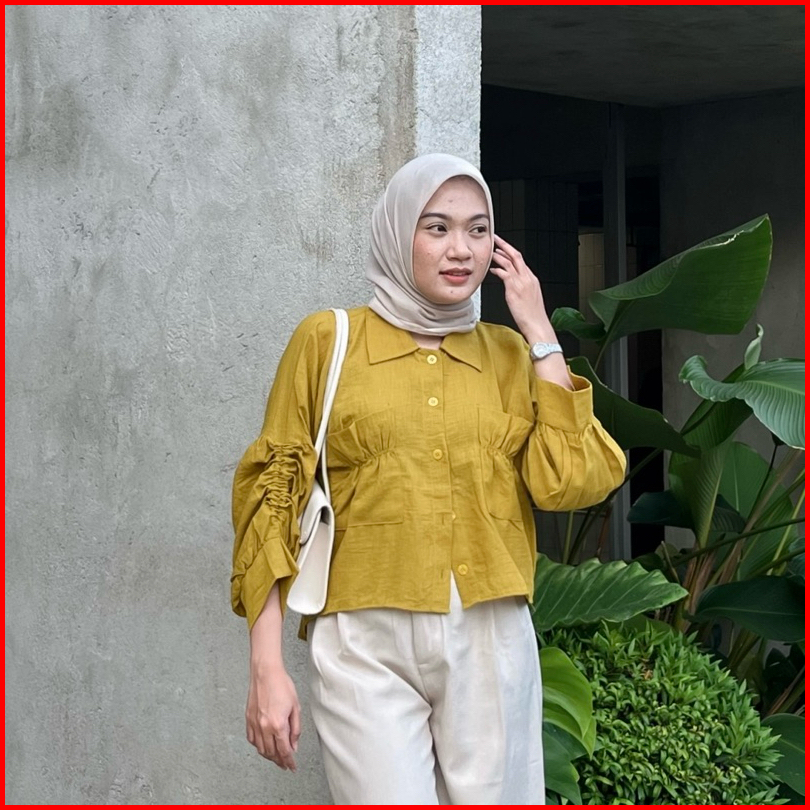 Praya.clo Kemeja Pocket Wanita Lengan Serut - Blouse Crop Wanita Linen Premium - Zizi Blouse