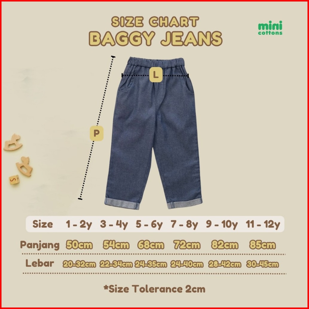 Minicottons Celana Baggy Denim Jeans Pants Look Anak 1-12 Tahun