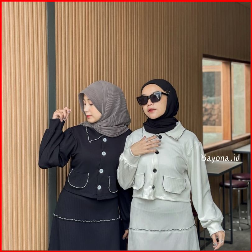 One Set Kemeja Hyejin Crop Rok Skrit Wanita Style