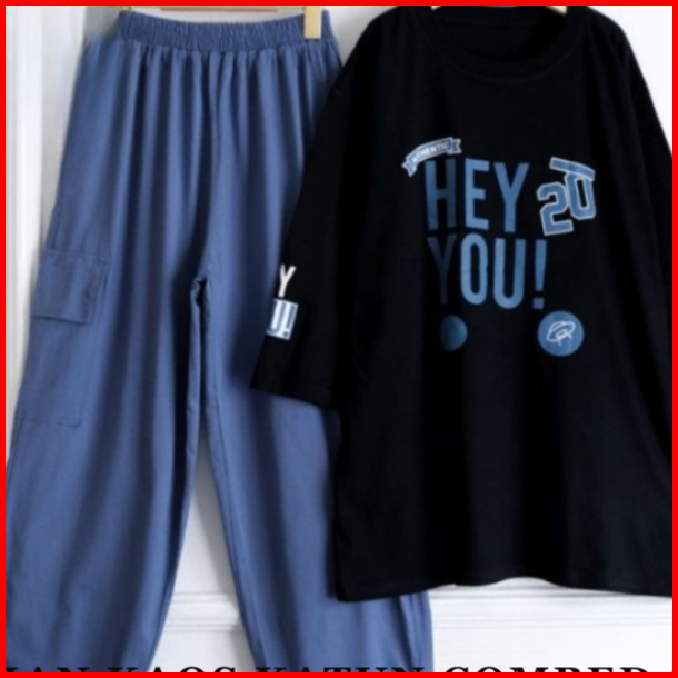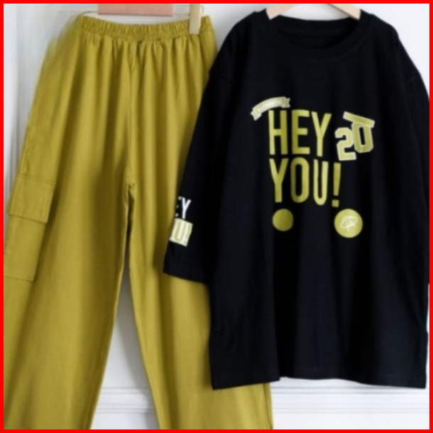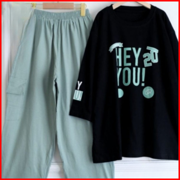 Setelan Baju Atasan Wanita Dan Celana Cargo Hey You Setelan Wanita Bahan Babyterry