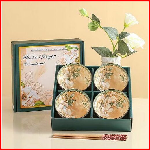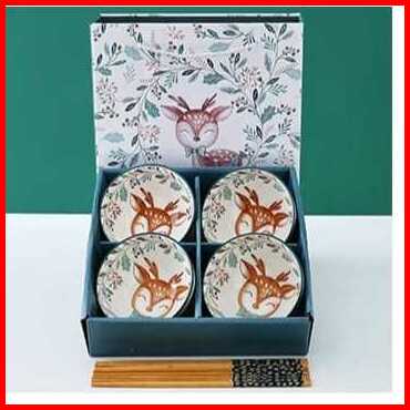 Cane Flower Mangkok Set 4 Jepang Set Sumpit Mangkok Keramik Kado Wedding Hampers Ultah Anniversary