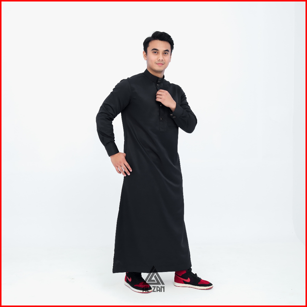Jubah Gamis Pria Reguler Jubah Muslim Pria Gamis Muslim Pria Panjang Manset Kancing Katun Hitam Busana Muslim Model Terb