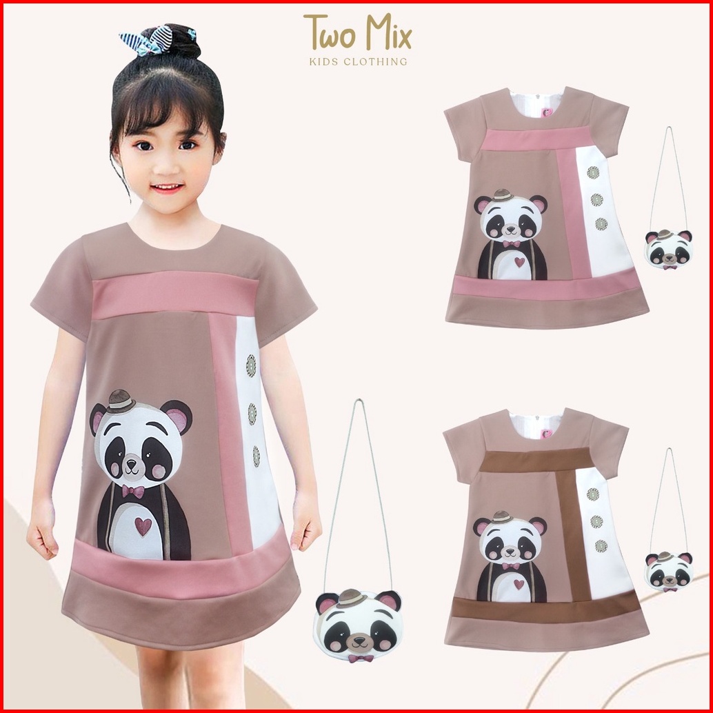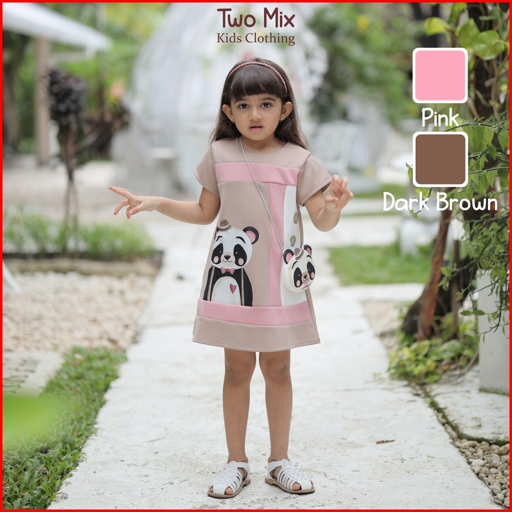 Two Mix - Baju Dress Anak Perempuan Lebaran 2025 Bear Bonus Tas Lucu 1-8 Tahun 4296