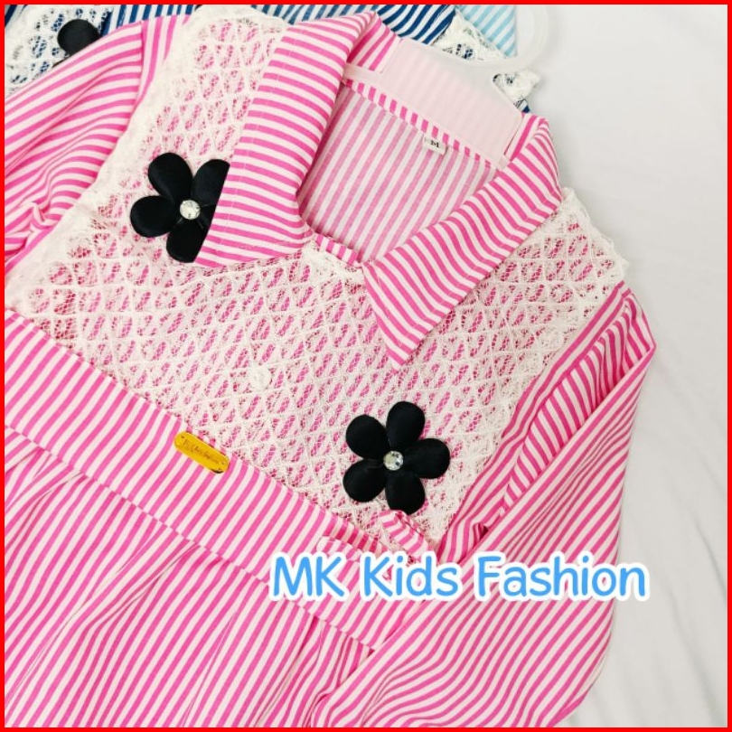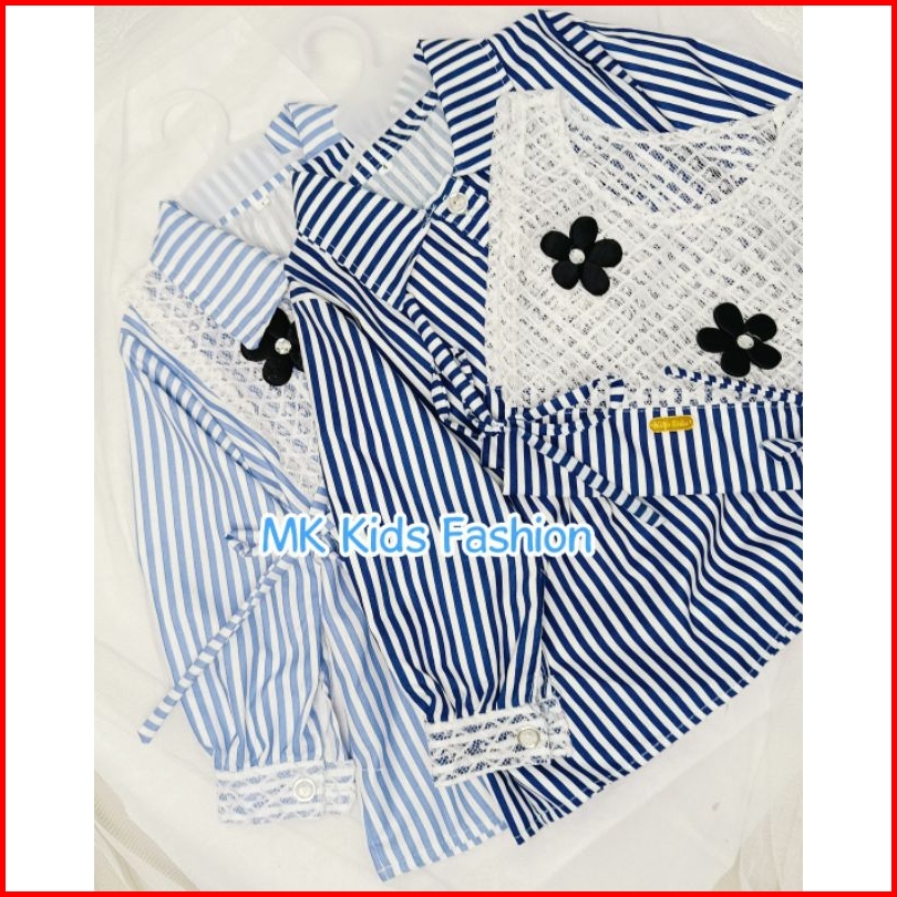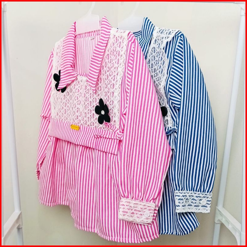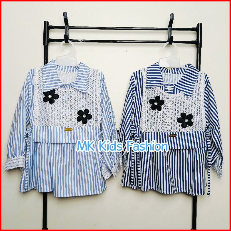 Blouse Anak Perempuan 2 In 1 Untuk Usia 1 Sampai 13 Tahun Rompi Dapat Di Lepas Pasang Bahan Katun Salur Kemeja Anak Dres