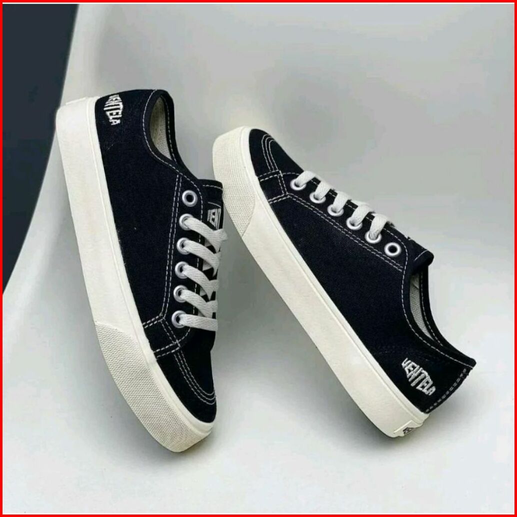 Ventela Public Low Black Natural Sepatu Sekolah Sneakers Ventela Hitam Putih Pria Wanita Casual