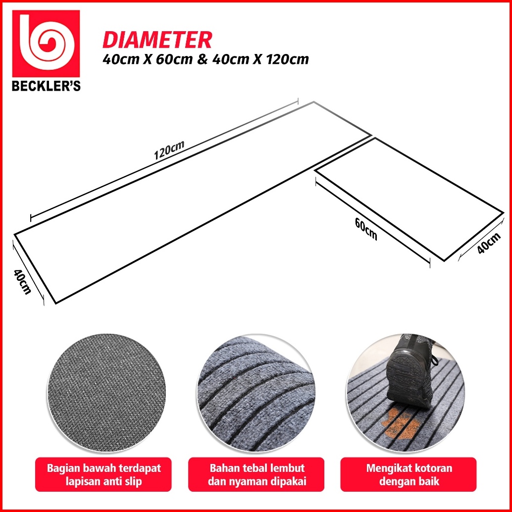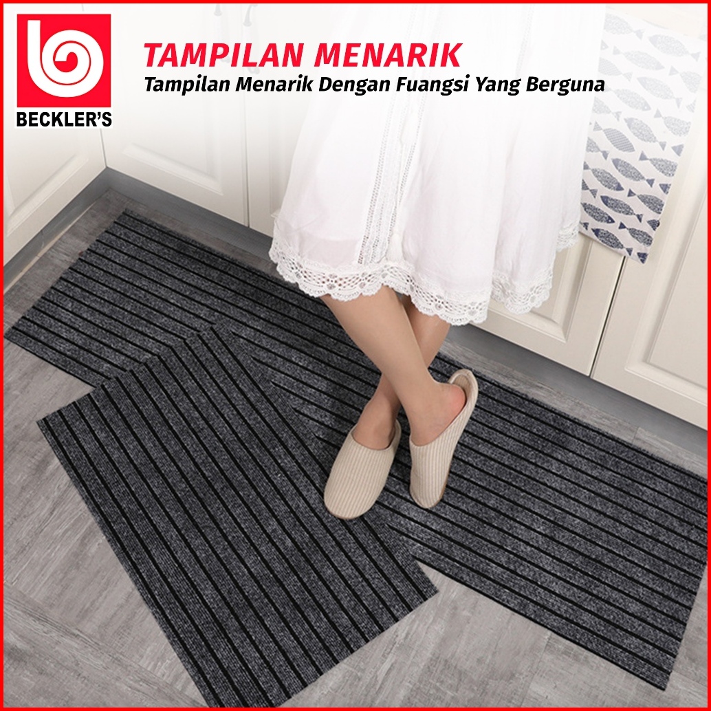Beckler S Keset Dapur 2in1 Premium Motif Garis Bahan Karet Pvc Antislip 3 Warna 1set 2pcs