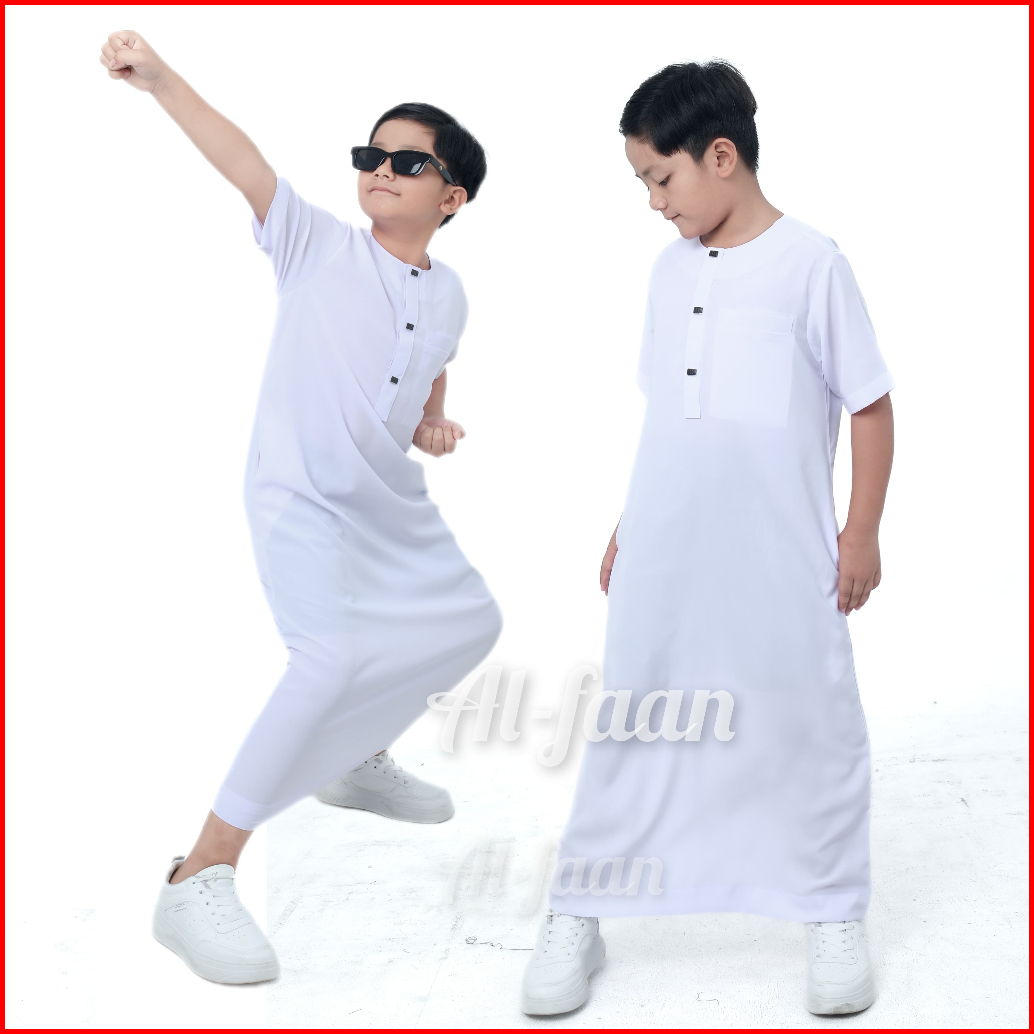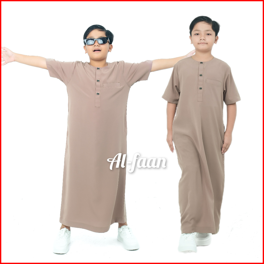 Jubah Pria Anak Remaja Jubah Anak Muslim Lengan Pendek Katun Jubah Alfaan Anak Robes