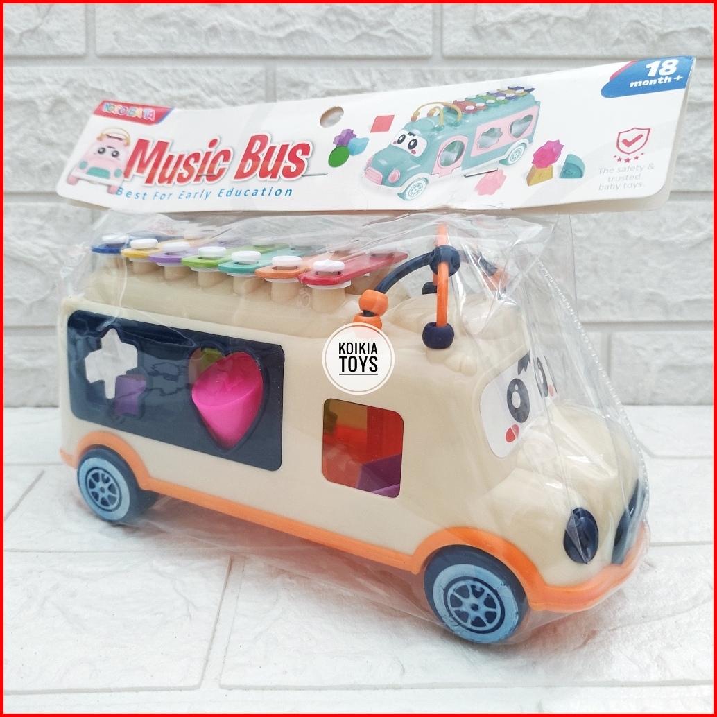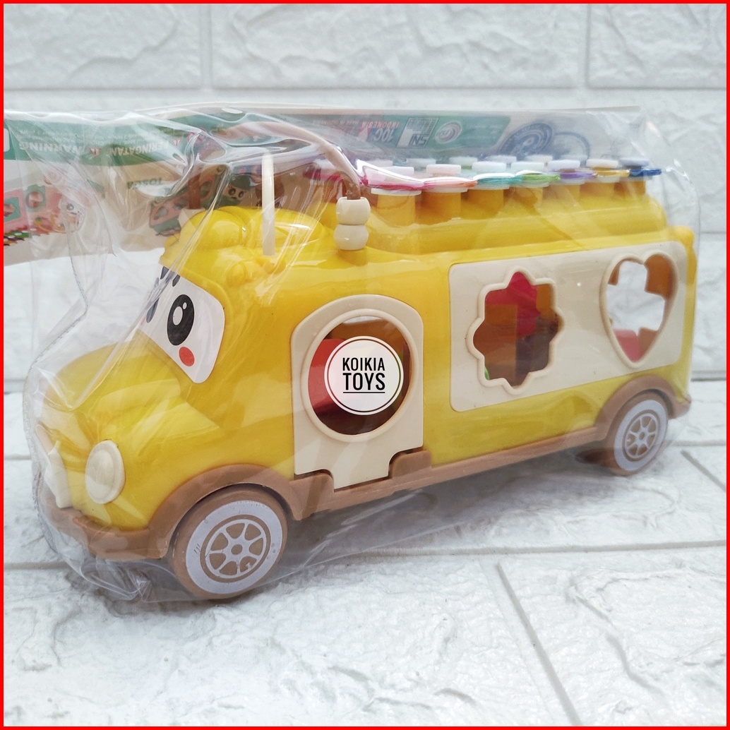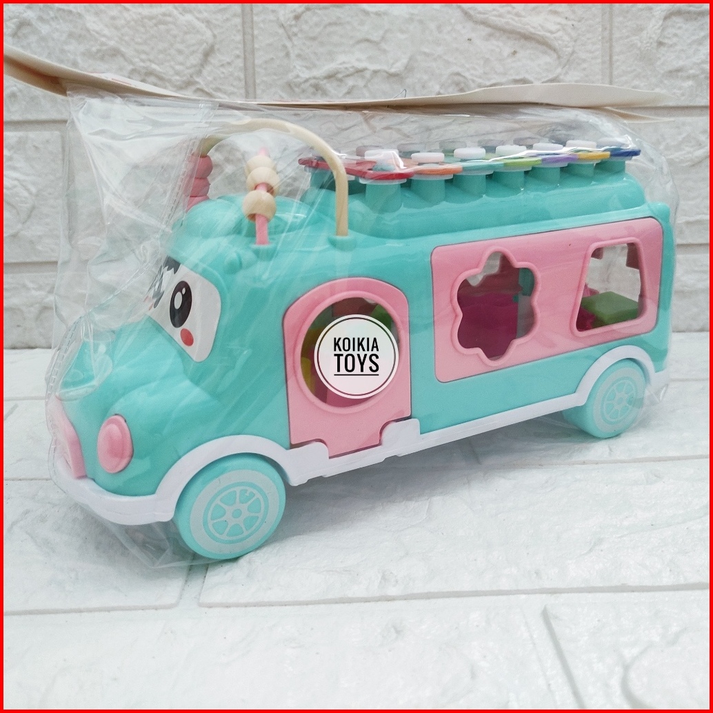 Mainan Anak Bayi 3in1 Kulintang Xylophone Bus Puzzle Bentuk