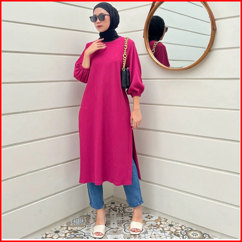 Long Tunik Midi Clarke Midi Wanita Bahan Kaos Knit Hanover Merk Clarke