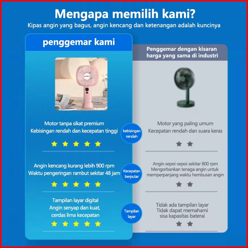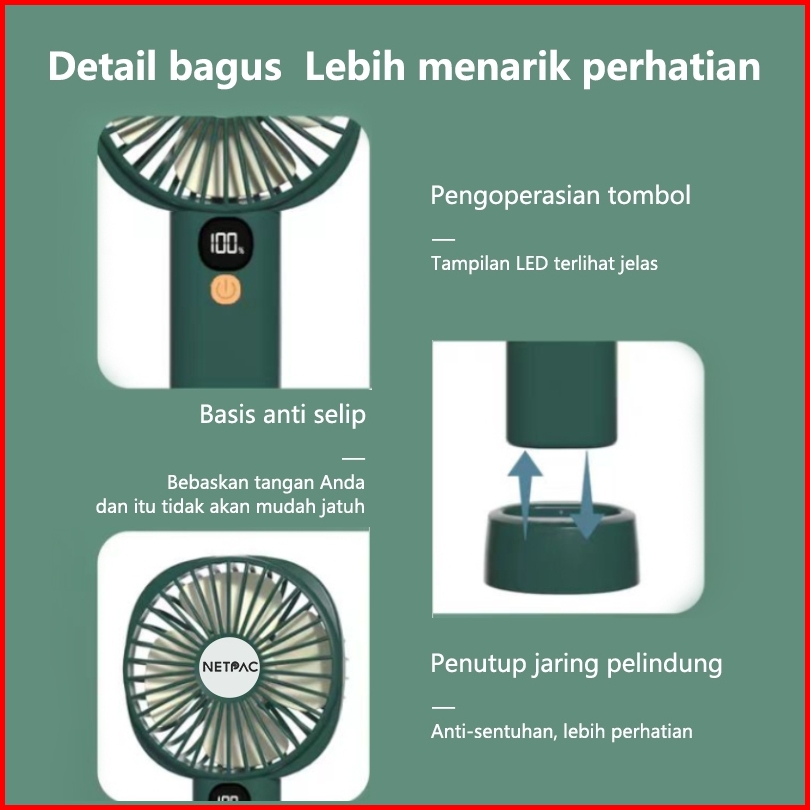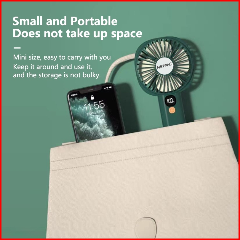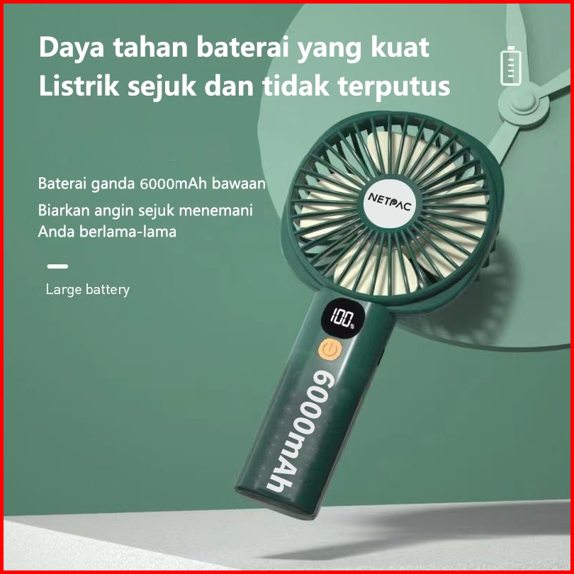 Netpac Kipas Angin Mini Portable 6000mah Real Capacity Brushless Macaron Lucu Design Led Mini Fan Original