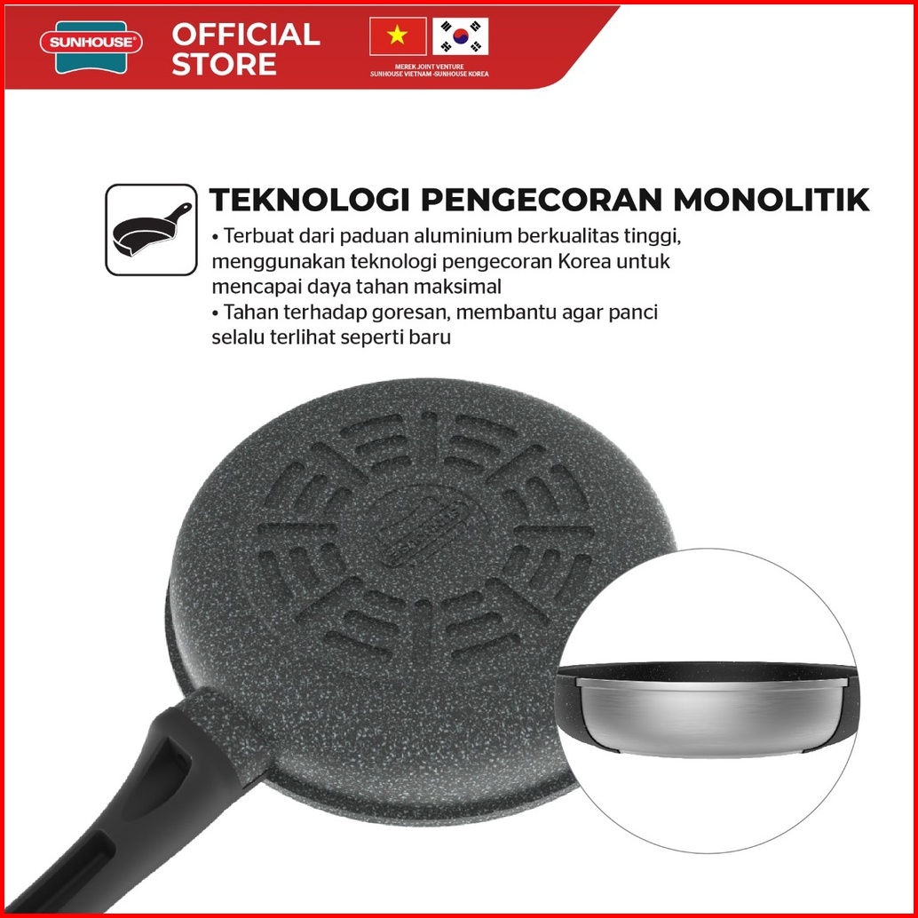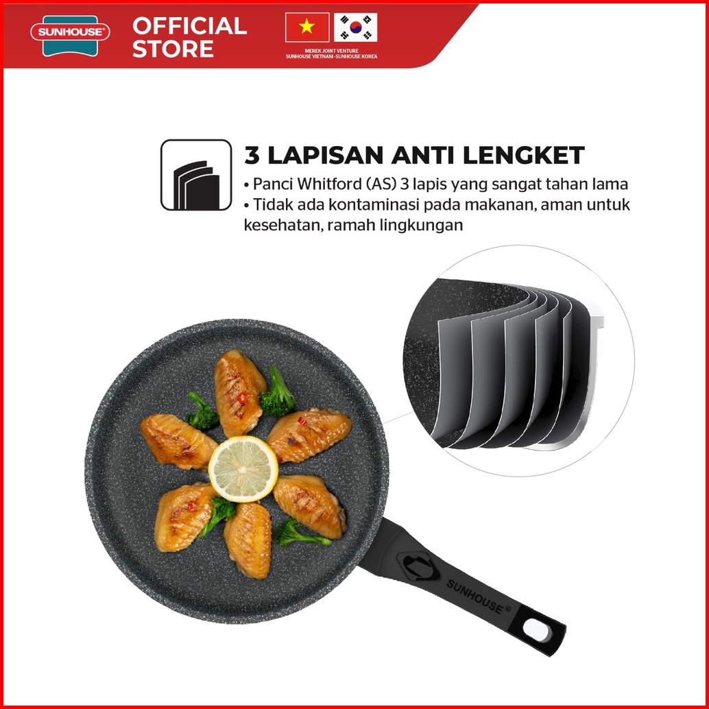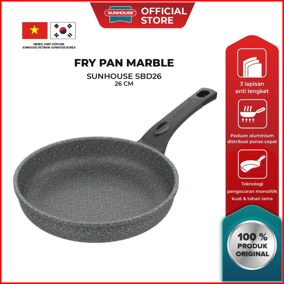 Sunhouse Sbd26 Marble Frypan Anti Lengket Hitam 26 Cm 1 Pcs