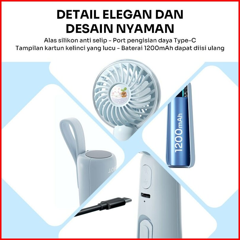 Robot Kipas Angin Mini Portable Genggam Handled High Speed Kipas Turbo 1200mah Murah Mini Fan Rt-bfs2 Original - Garansi