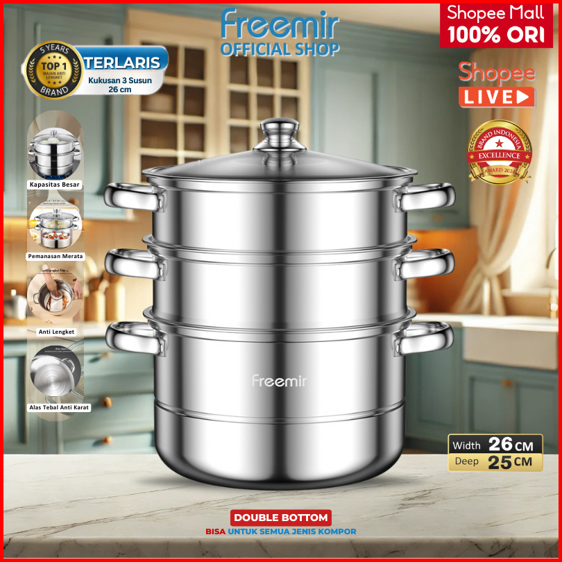 Special Freemir Panci Kukus 3 Susun 26cm Stainless Steel Anti Karat Bisa Kukus Dan Rebus 4l