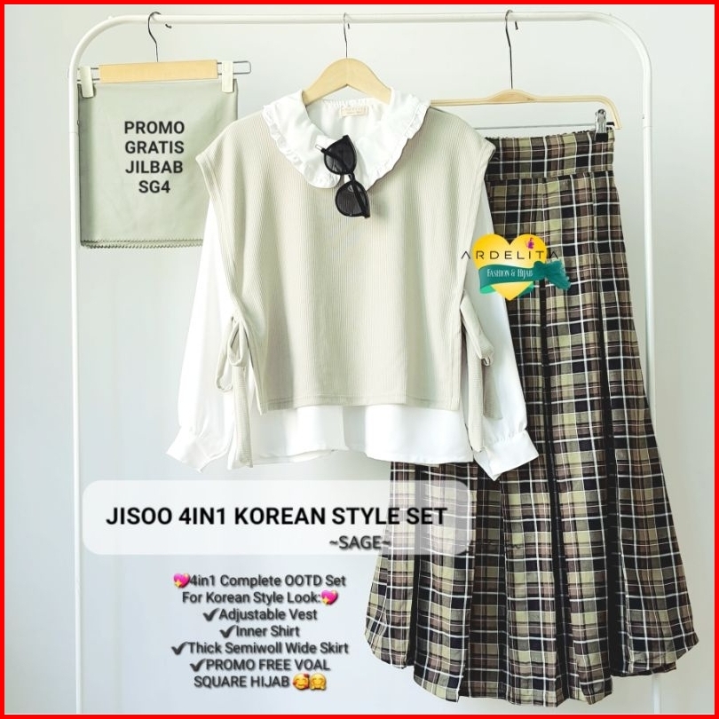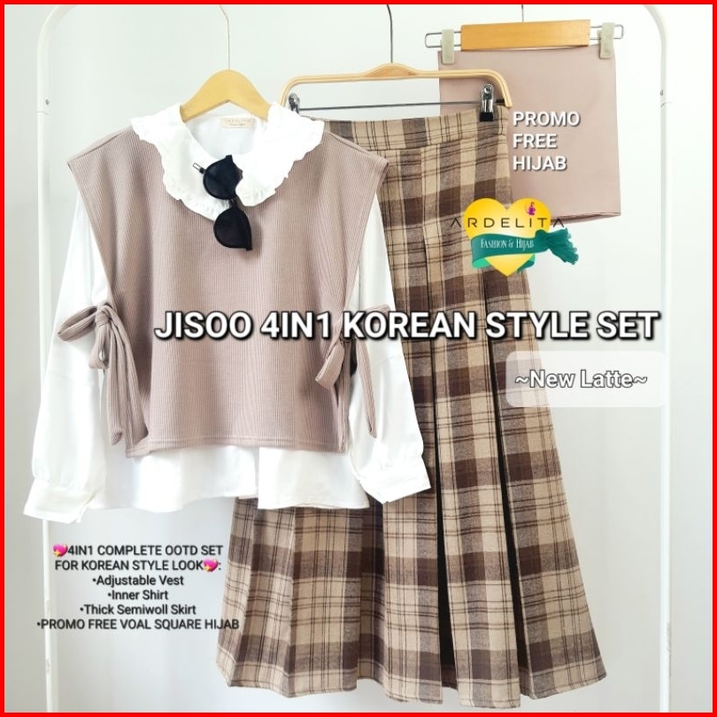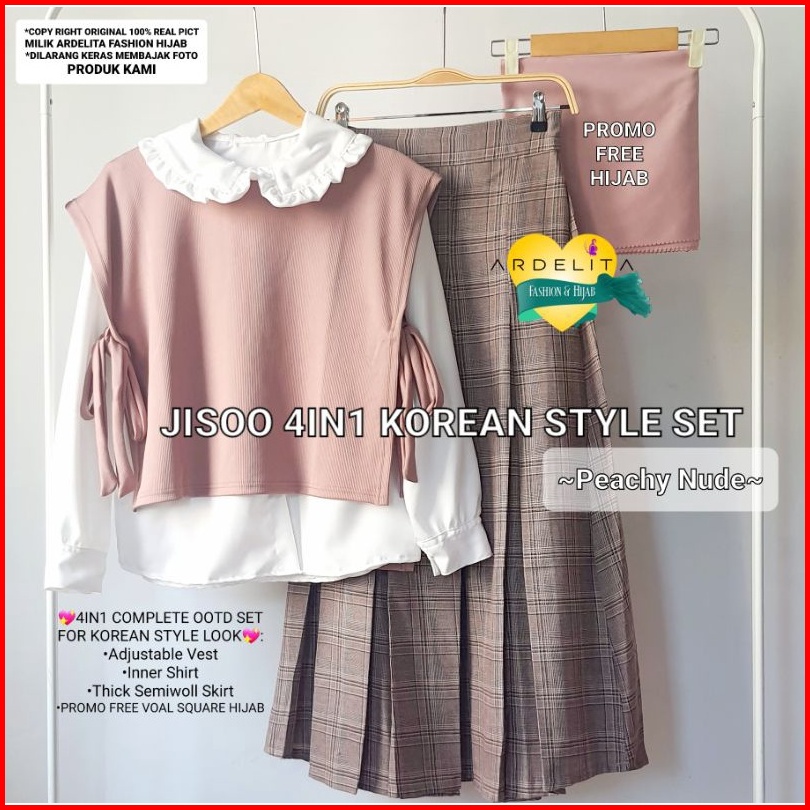 Promo Free Hijab Jisoo 4in1 Korean Style Ootd Full Set Baju Lebaran 2023 Wanita Remaja Hemat Lengkap Premium Harga Murah