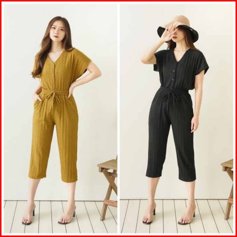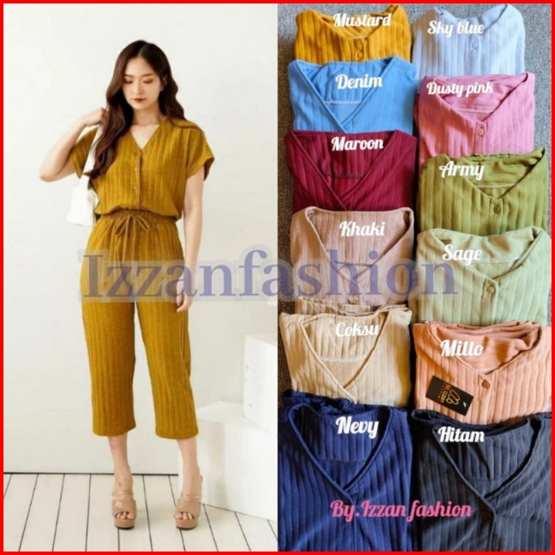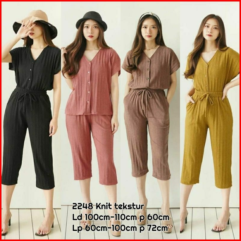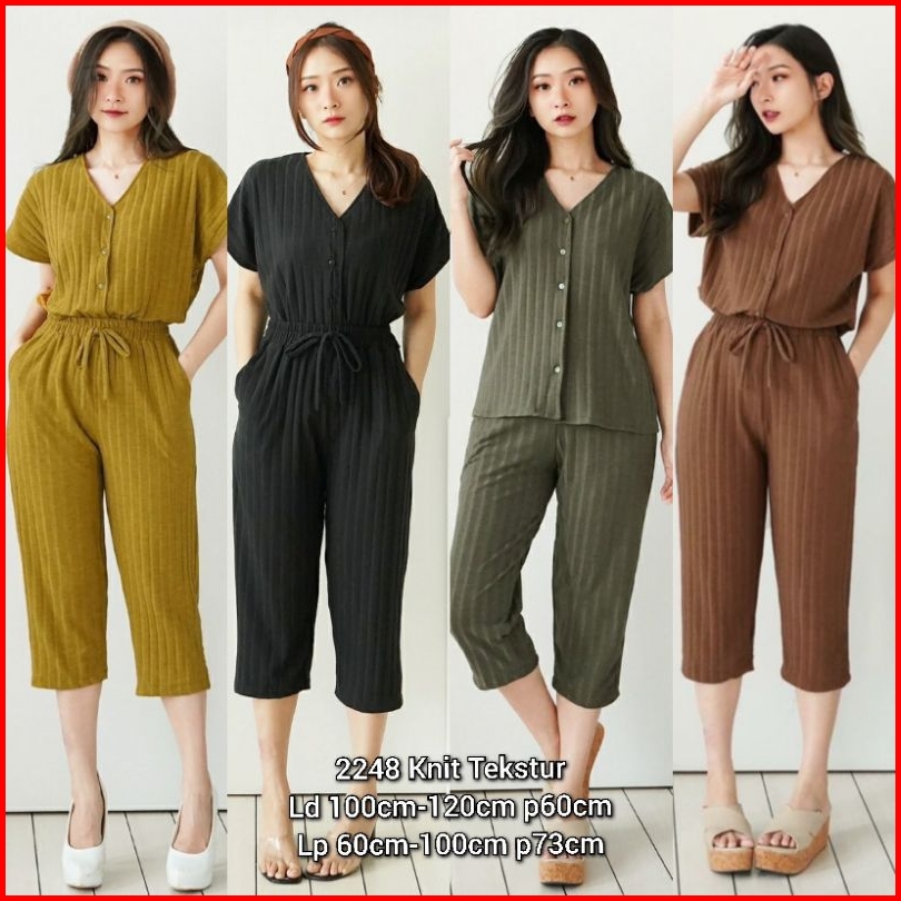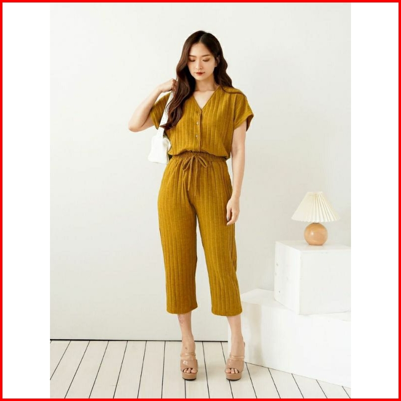 One Set Wanita Terbaru Estella Knit Button Setelan Baju Dan Celana 7 8 Korean Style