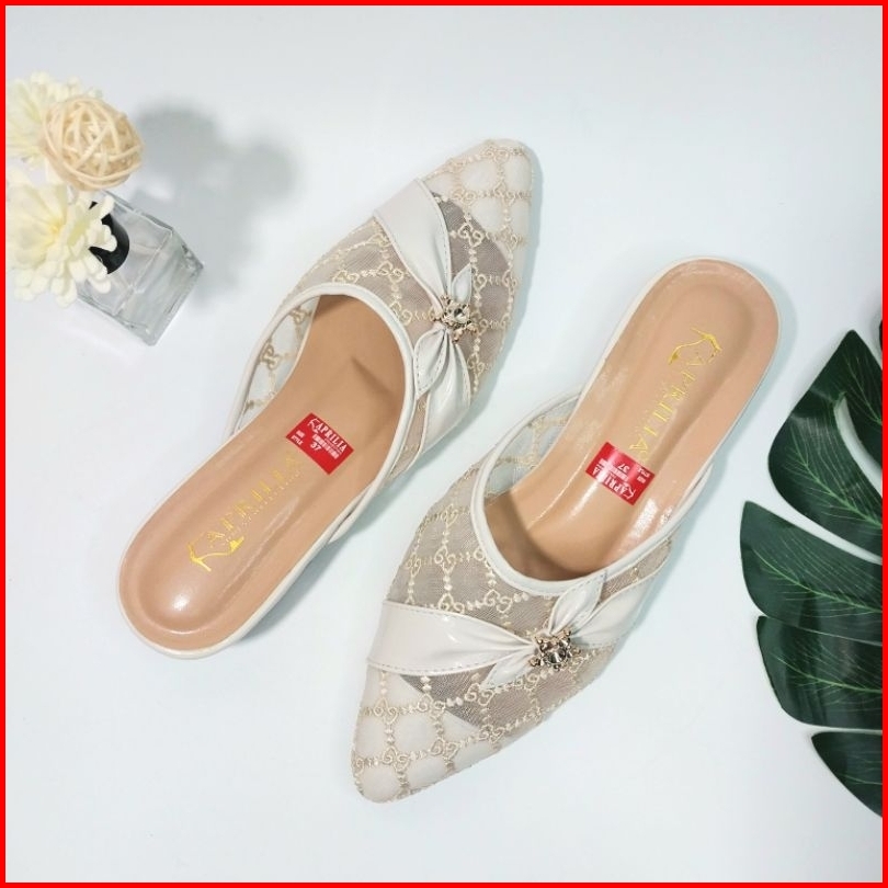 Sandal Bustong Brukat Pesta Wanita Hak Tahu 3cm Sandal Brukat Pesta Wanita Sendal Wanita Kondangan Mewah Elegant Sandal