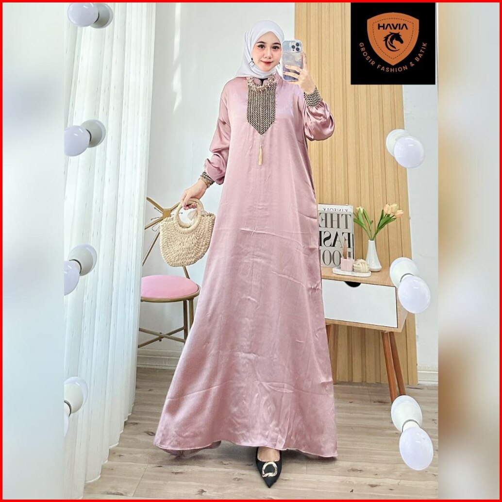 Havia - Gamis Cradenza Shimmer Silk Kombinasi Renda Sultan Busui Jumbo Gaun Lebaran 2024