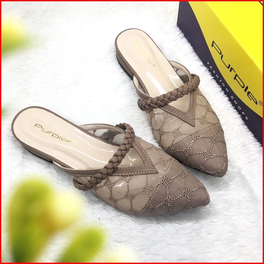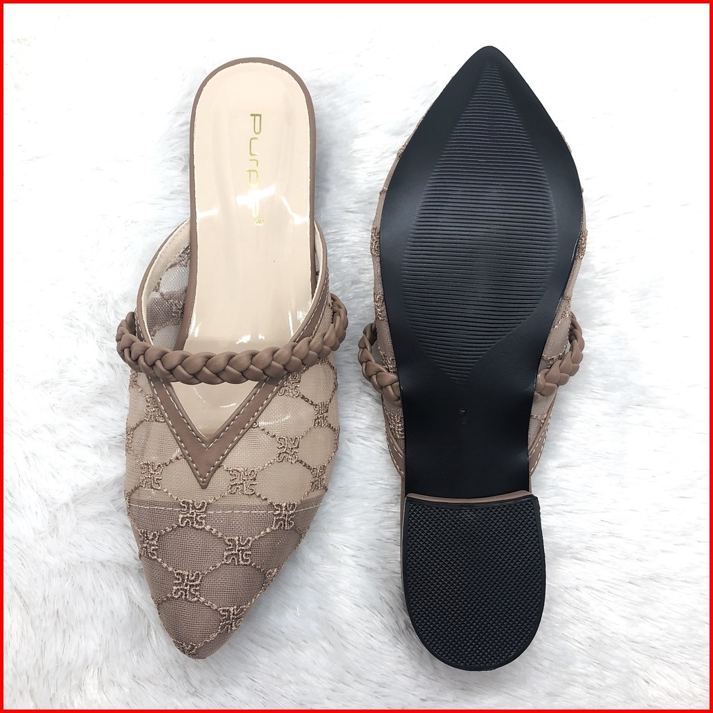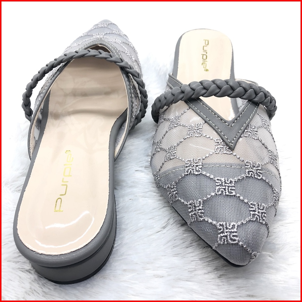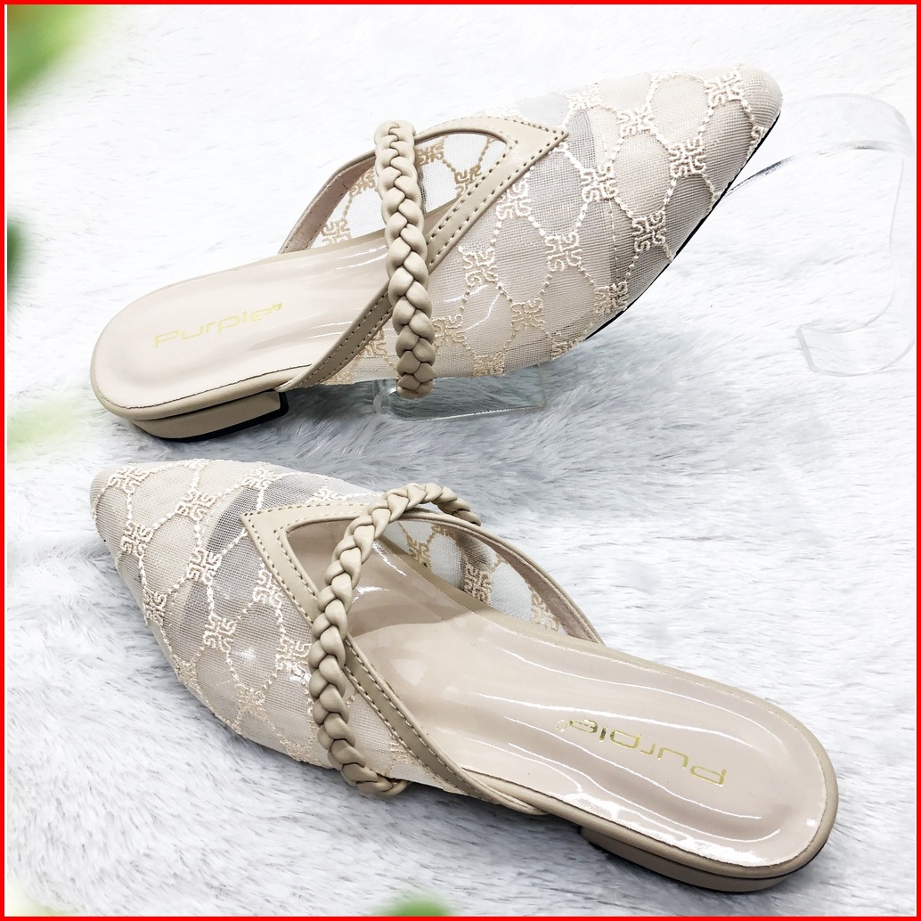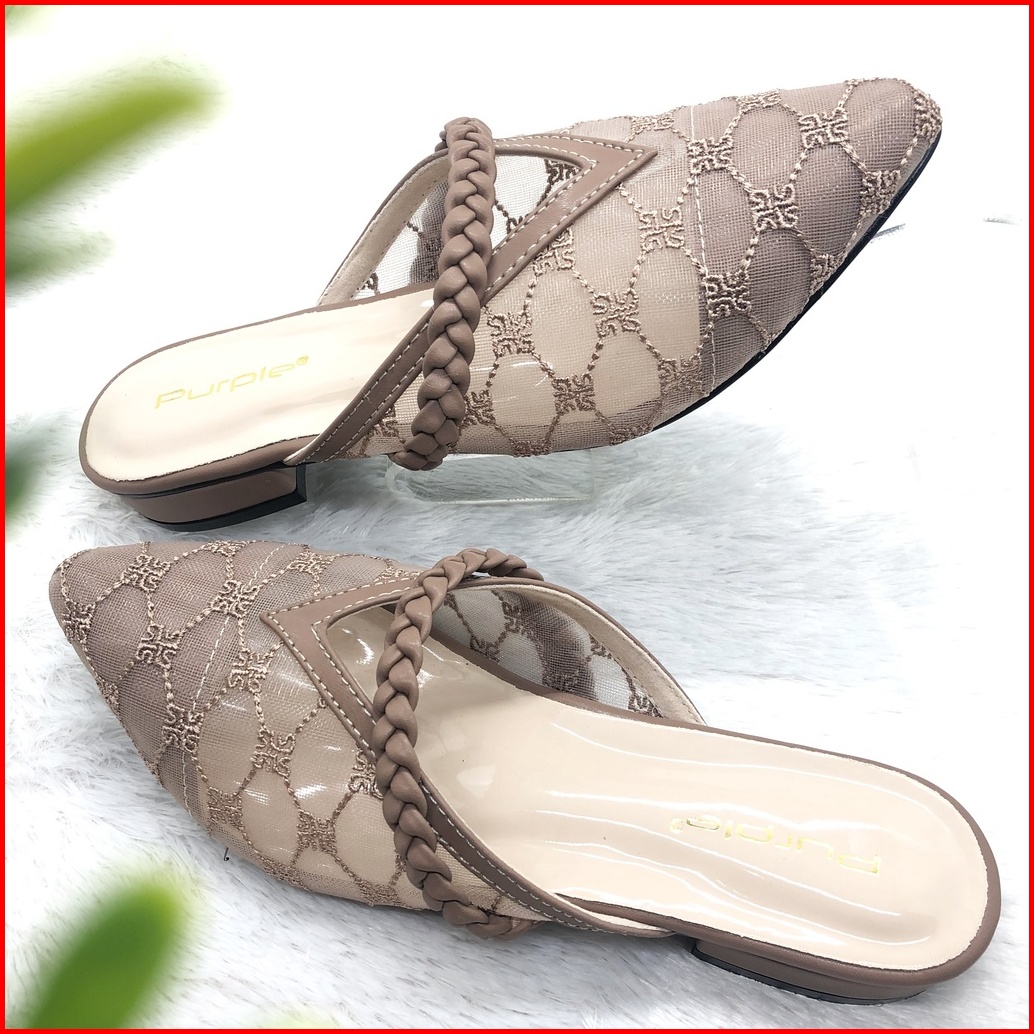 Sandal Flat Brukat Kepang Purple Teplek Sofiaa Series Bapau Shoes