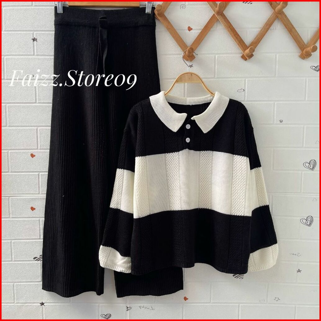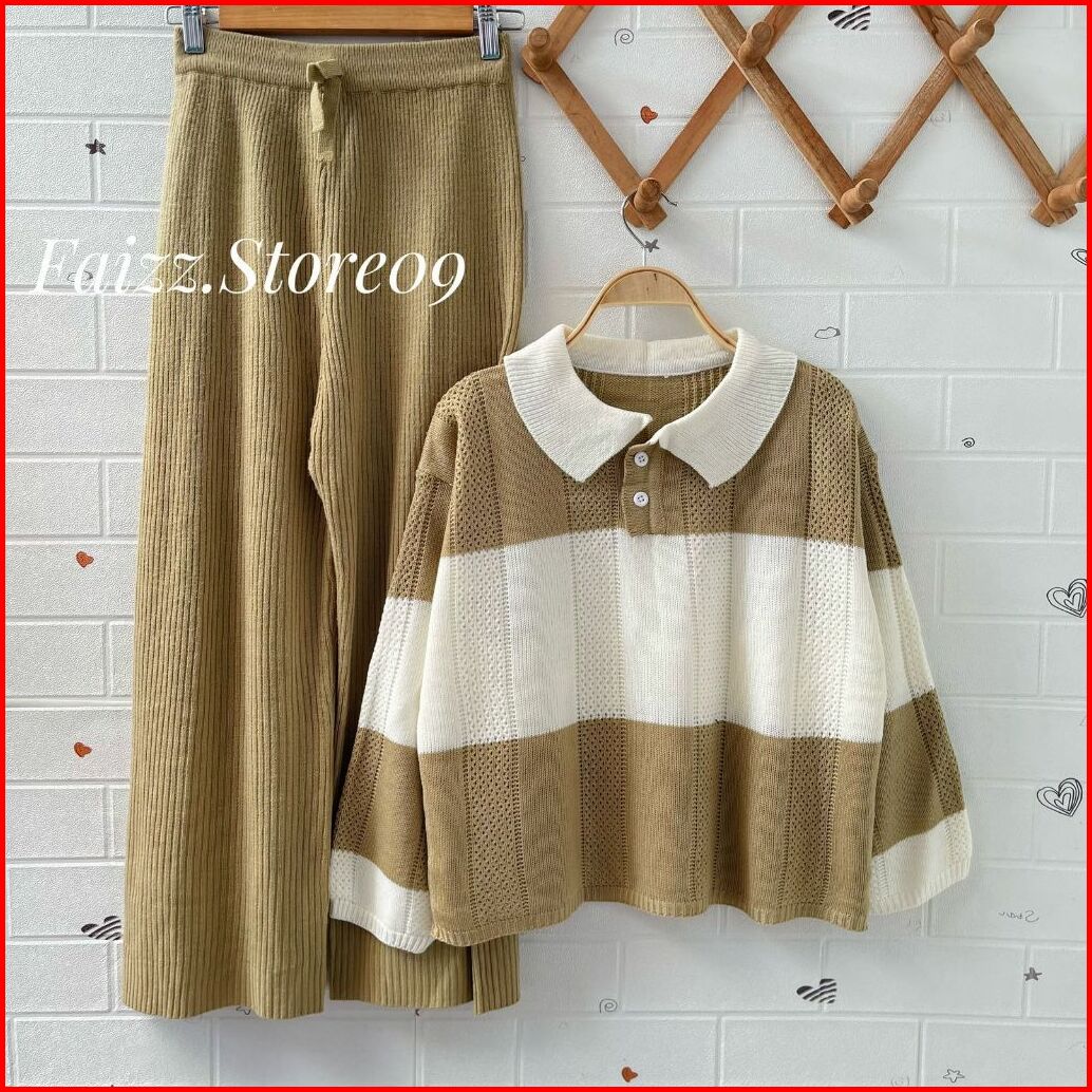 Oneset Naomi Setelan Celana Kulot Rajut Wanita