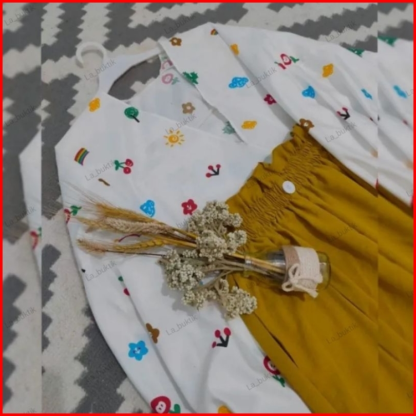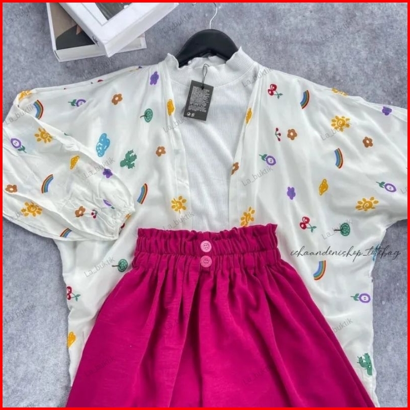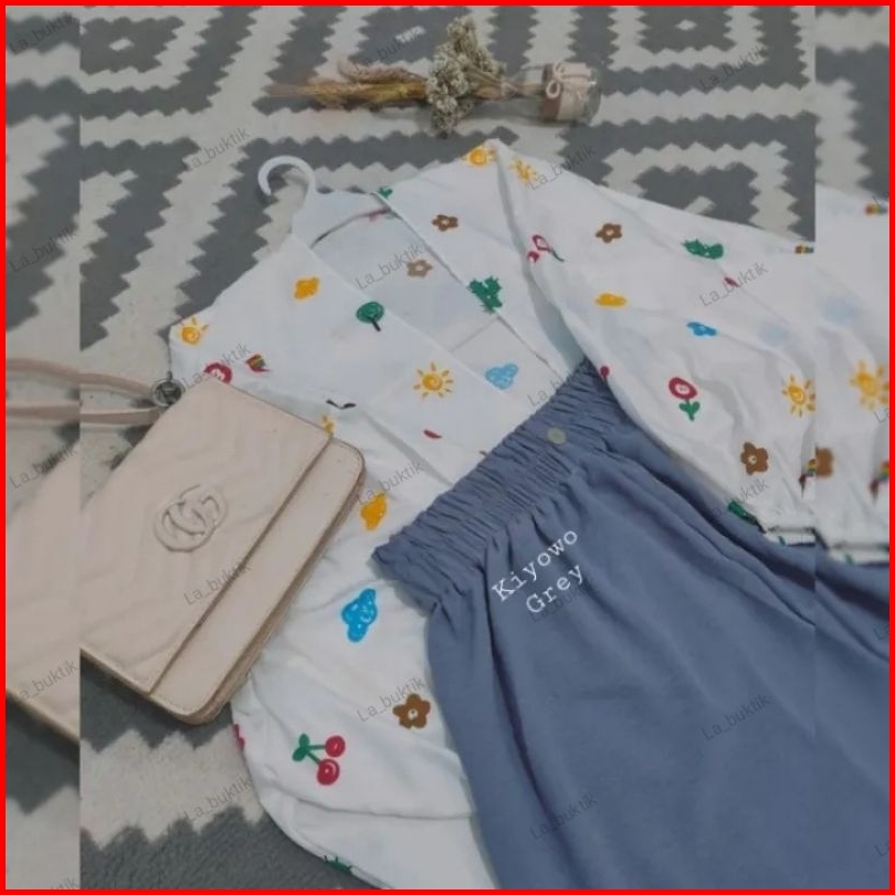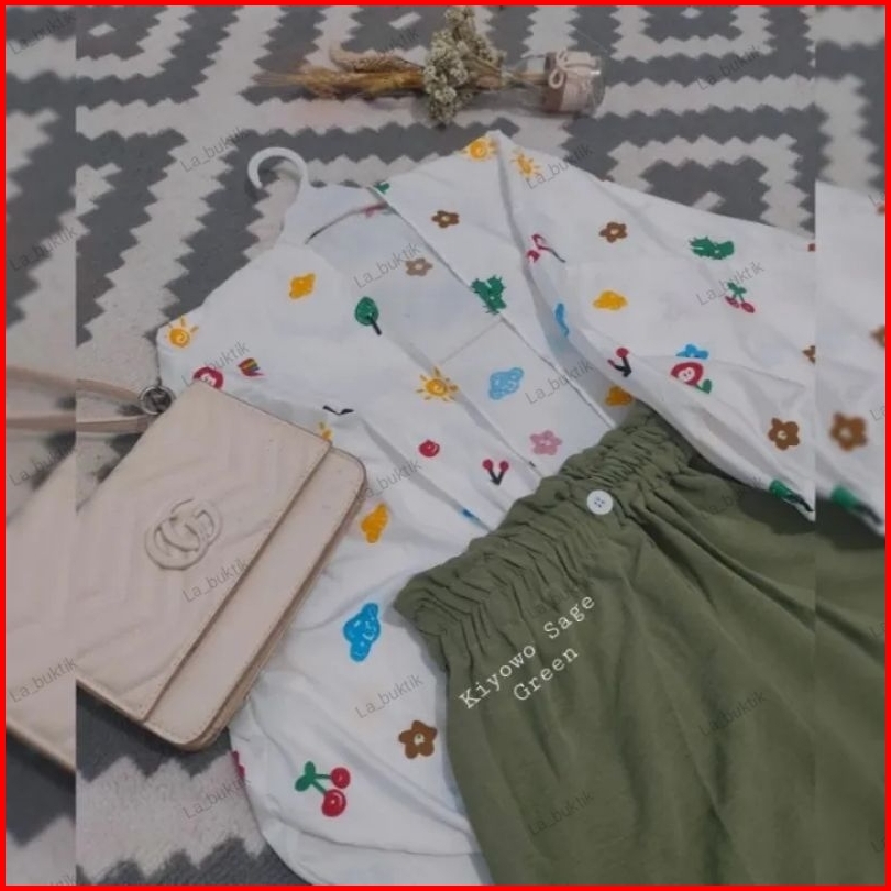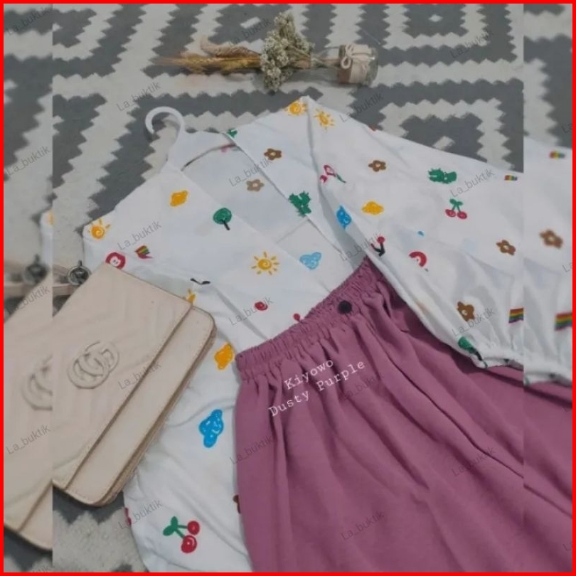Setelan Baju Kiyowo Dan Cenalana Kulot Kancing Susun Pinggang Karet Korea Oversize Bahan Adem Nyaman Serta Lemut Di Guna