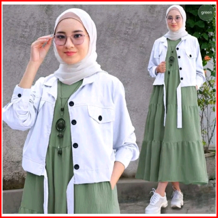Ready Stock Valen Set One Set 2in1 Bahan Crinkle Airflow Toyobo Setelan Wanita Kekinian Fashion Muslim Terbaru