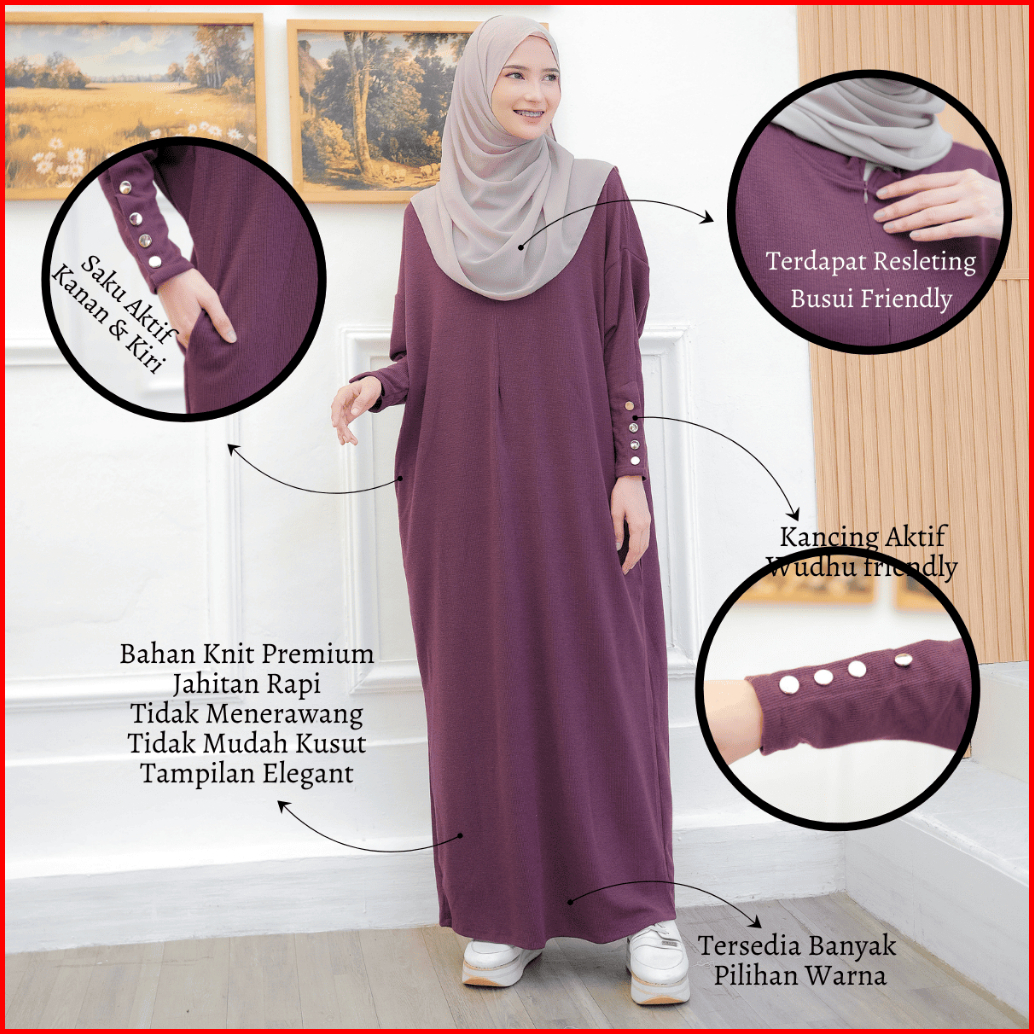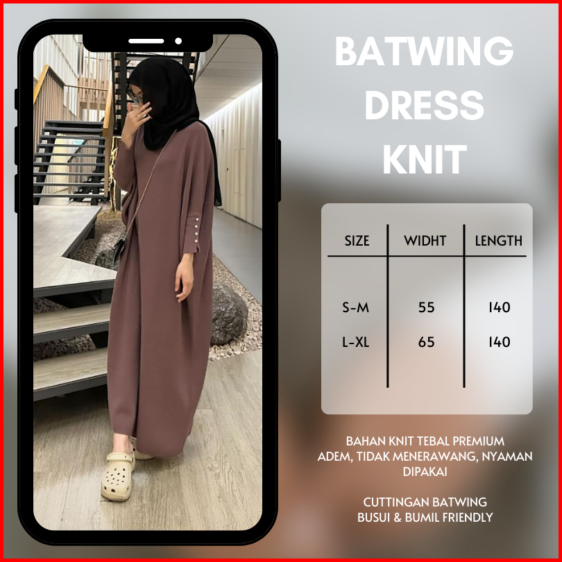 Syahira Dress Batwing Wanita Kekinian Gamis Polos Basic Premium Bahan Katun Knit