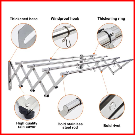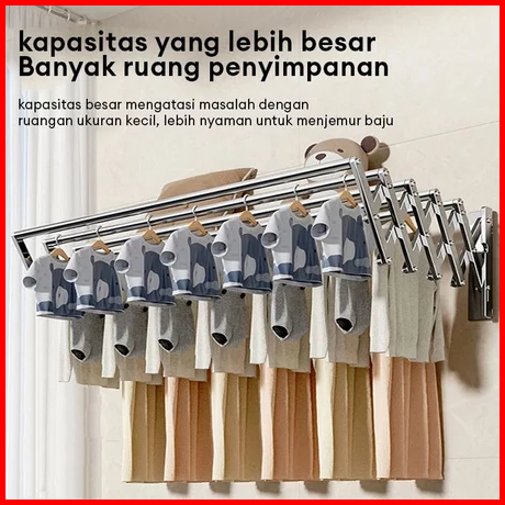 Codjemuran Lipat Dinding Stainless Jemuran Baju Pakaian Dinding Rak Jemuran Tembok Gantungan Jemuran