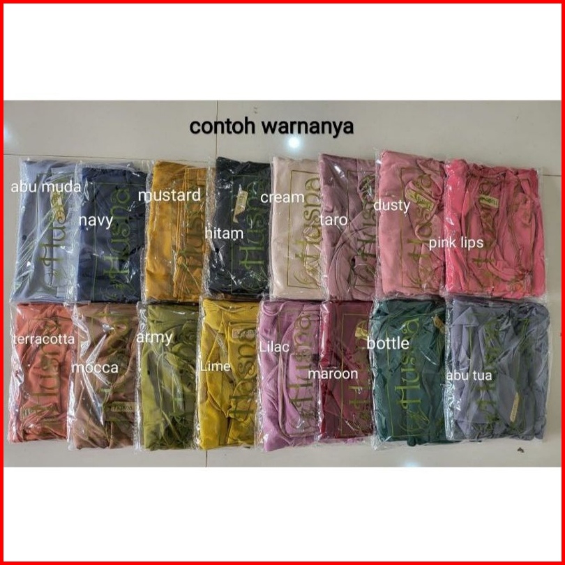 Hitam, Navy, Abu Tua, Abu muda, Lilac, Coklat pramuka, Pink lips, Hijau army, Sage, Wardah, Bottle, Mustard, Lime, Dusty, Cream, Maroon, Taro, Denim, MiLo, Mocca, Dark Terracotta, Khaki/chinos, Putih bersih, Putih noda, Hitam rd tipis, Hitam rijek dikit, D.teracota rijek dik, Cream rijeck dikit