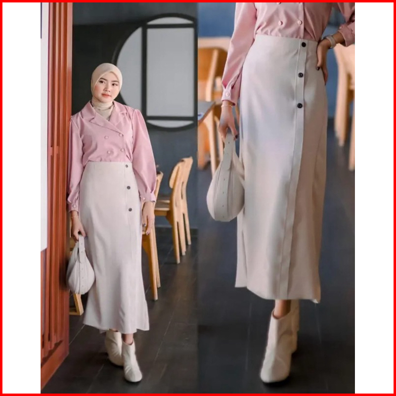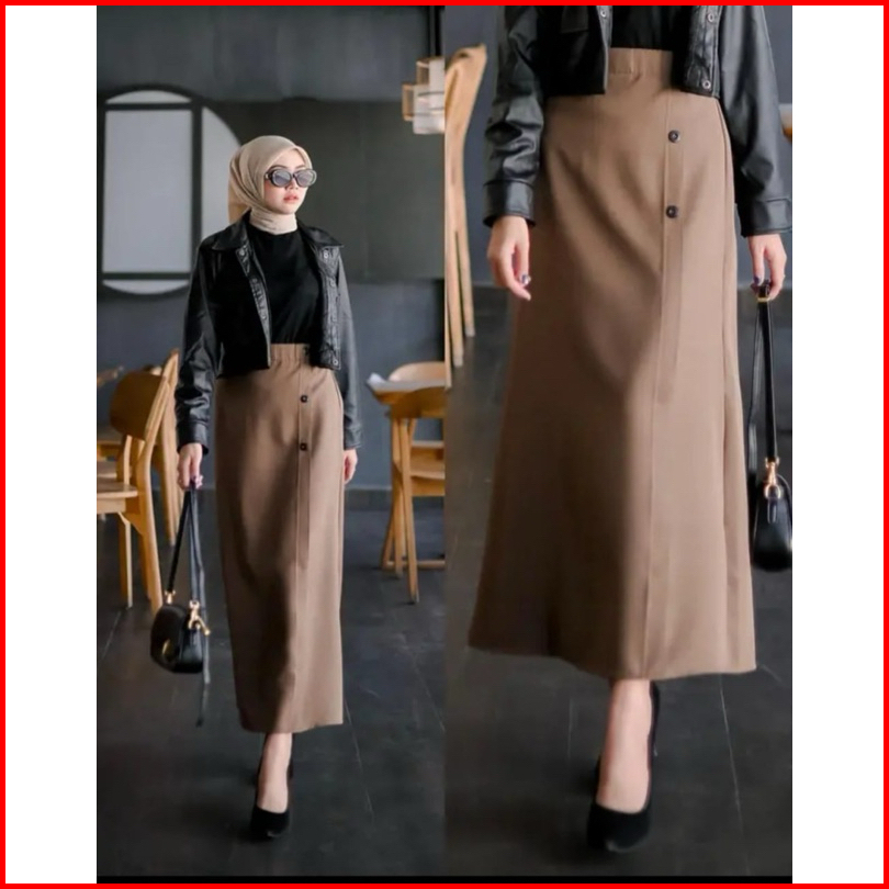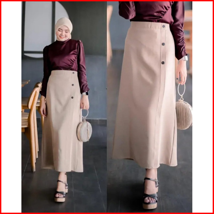 Luna Skirt Rok Panjang Bengalin Wanita Semi A-line Karet Rok Korean Style