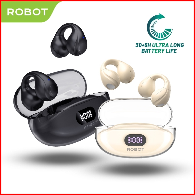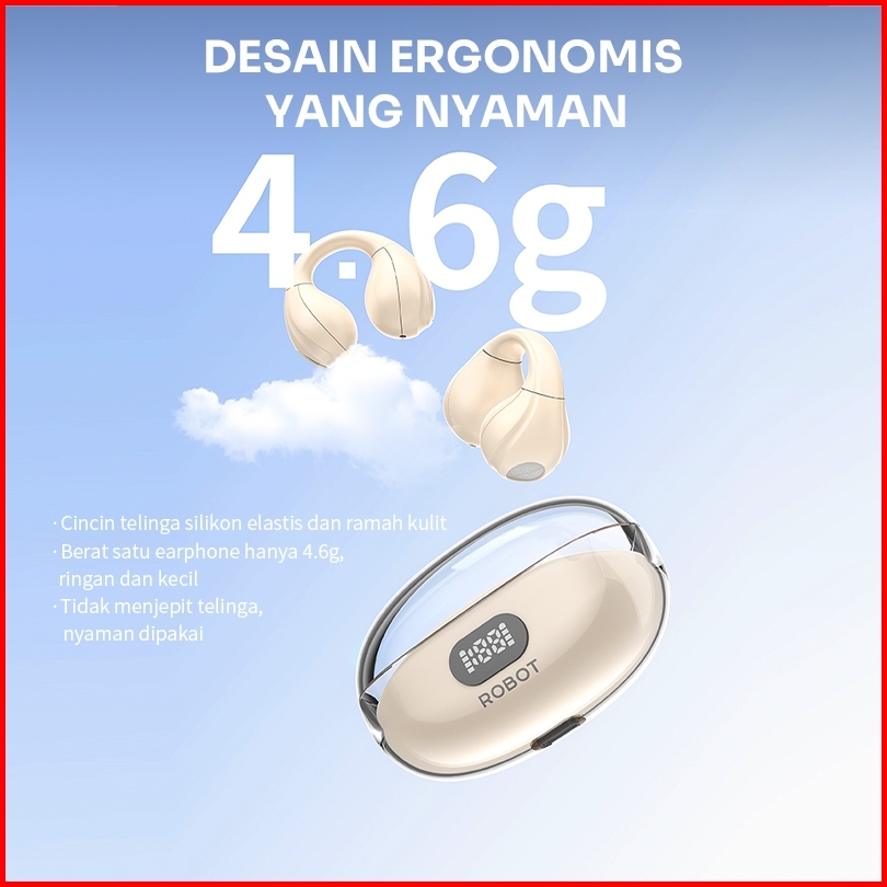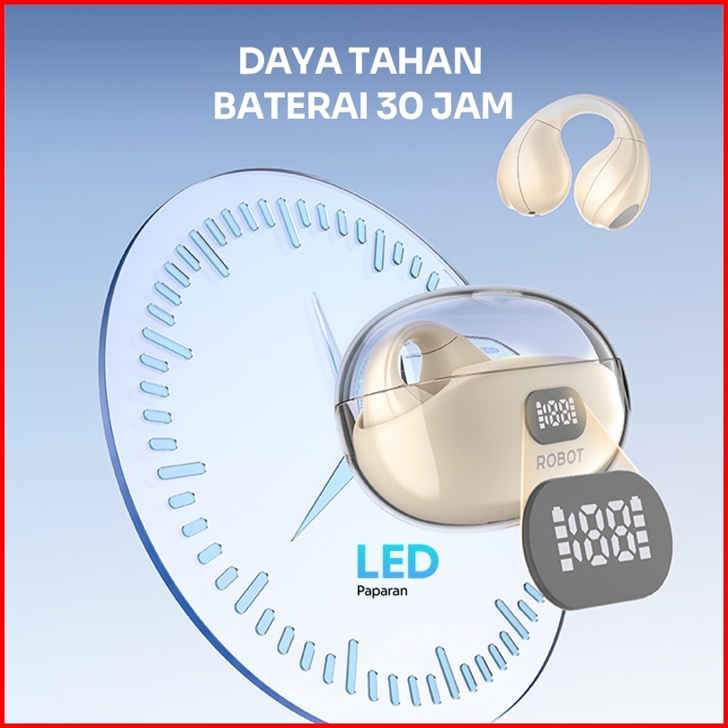 Robot Tws Open Ear Clip Style Led Display Earphone Bluetooth 5.3 Ows Air 10 Original - Garansi 1 Tahun